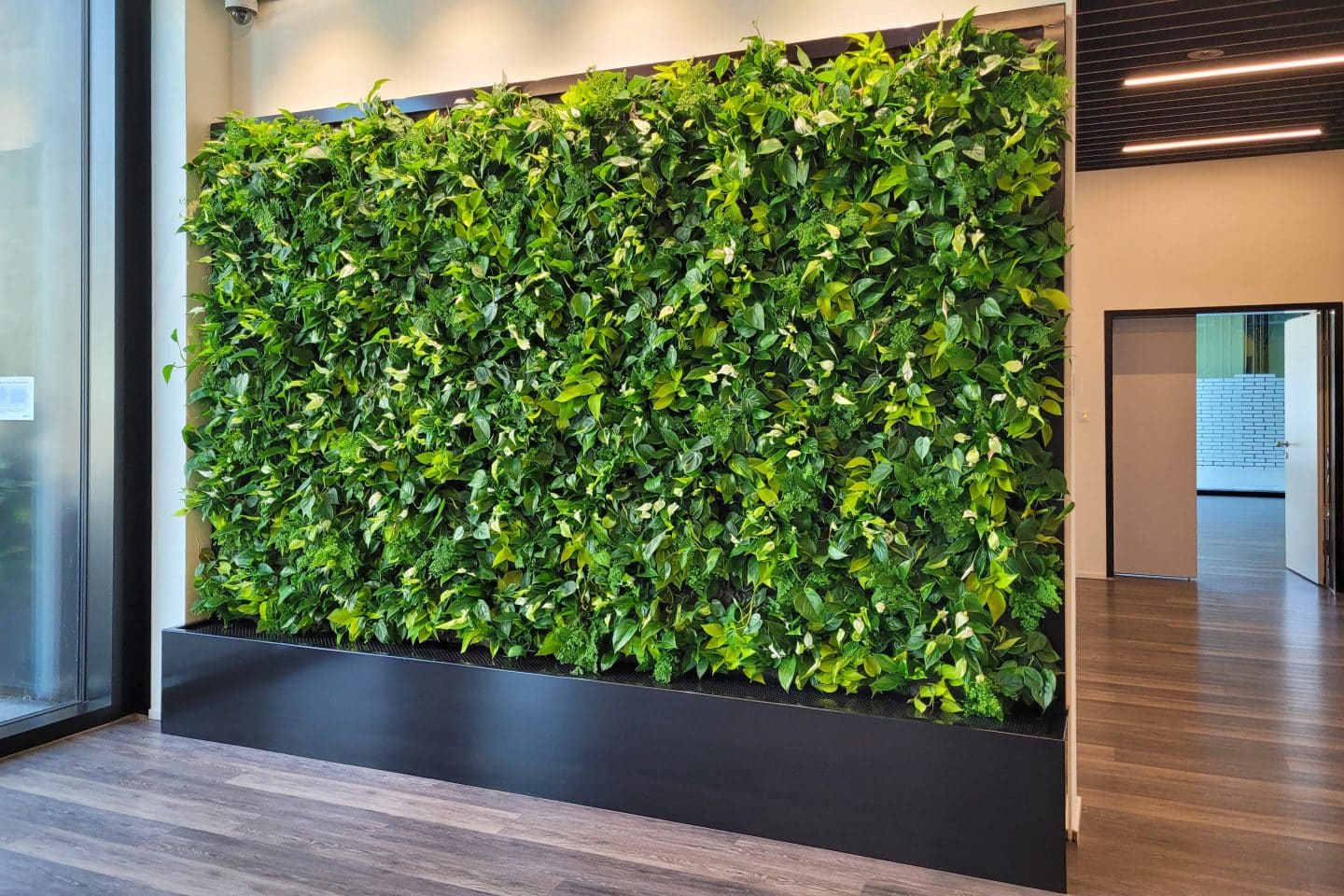 A green wall always requires a custom solution. Discover our modular systems for indoor and outdoor use – from compact, plug-and-play setups to large façades. Flexible, sustainable and easy to maintain.