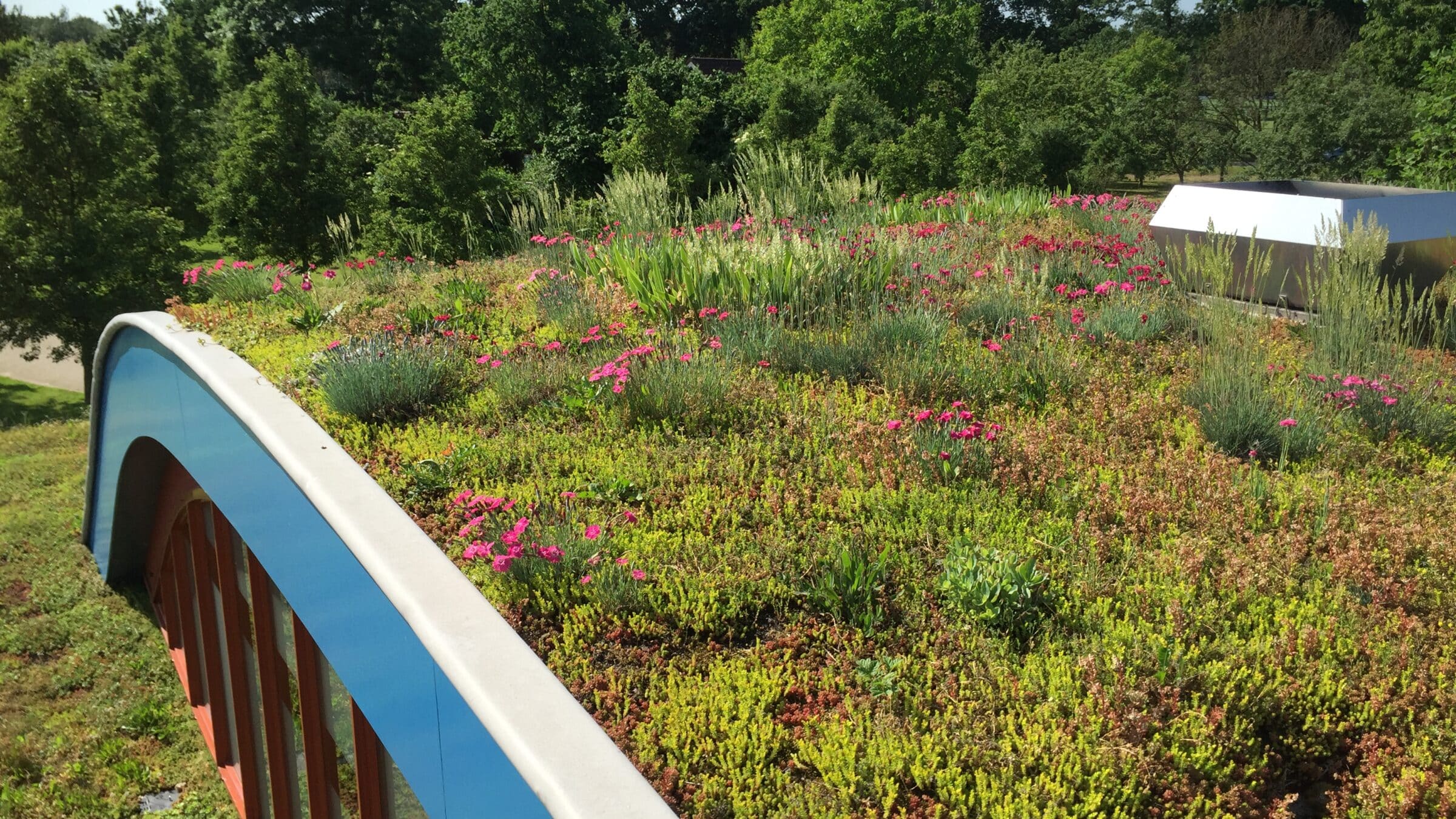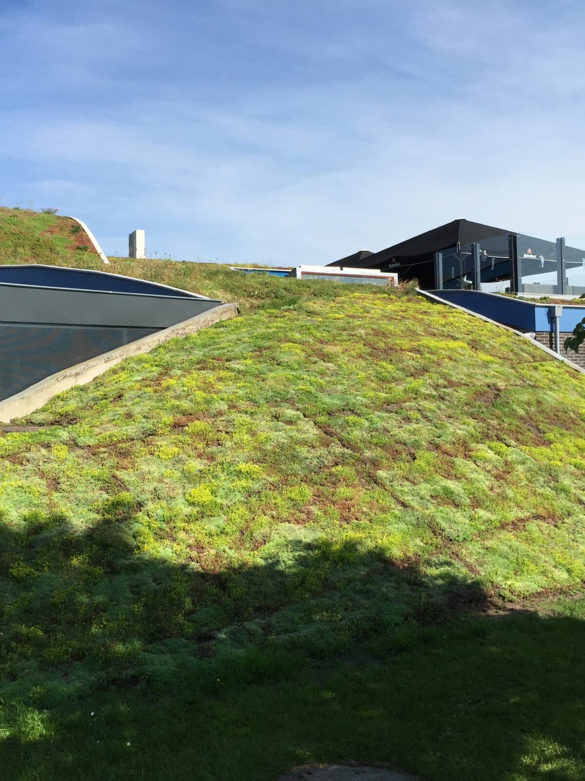 In this way, a Biodiverse green roof becomes more than just a piece of greenery: it acts as a stepping stone, connecting fragmented habitats across urban landscapes. And with the option of both standard and lightweight systems, biodiversity roofs can be installed on flat or sloping structures alike, even in places with limited load-bearing capacity. The result is a living, functional ecosystem overhead, enriching the building and the wider community at the same time, like here at Krommerijn Golfclub.
