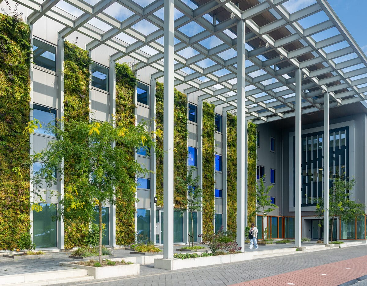 During the design process, the Cradle to Cradle® philosophy has been used as a guideline, which means that all materials used in the building process can be reused or easily recycled. Based on this philosophy, it was also decided to place eight Cradle to Cradle certified SemperGreenwalls at the front of the building.