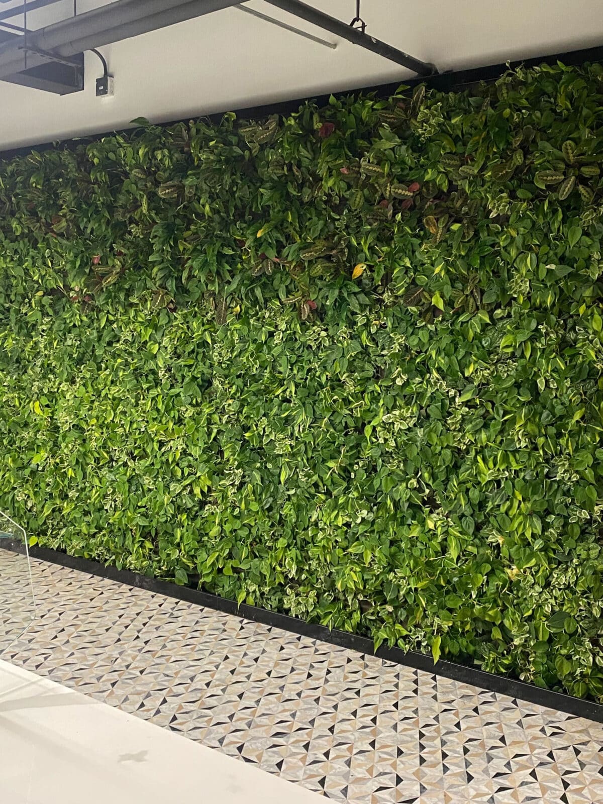 On the 7th floor of the office, another living wall has been installed, giving a luxurious and ‘artsy’ natural ambiance. The plant palette is designed with relatively, ‘low profile’ plants, preventing them from protruding too far off the wall to give everyone enough space to pass each other, whilst still giving a ‘jungle-like’ feeling. Each wall has its own smart irrigation system, ensuring the plants receive the right amount of nutrients and water. Additionally, Sempergreen Services is providing the maintenance to ensure a year-round beautiful, and lively, living wall.