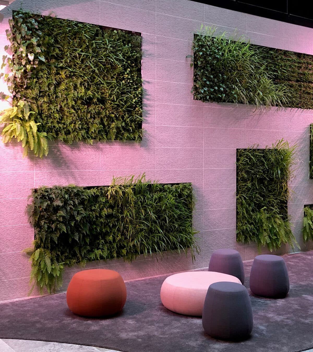 Featuring more than 2500 lush plants, the living wall in the EPA foyer holds multiple SemperGreenwall systems assembled together in an artistic and playful design. Every separate green wall in the foyer has its own irrigation system, providing the plants with water and nutrients. The green wall is integrated with the feature stone wall and receives lots of natural light via the central atrium. In low light conditions, however, extra artificial lighting of the SemperGreenwall supports optimal plant health and growth over the years.