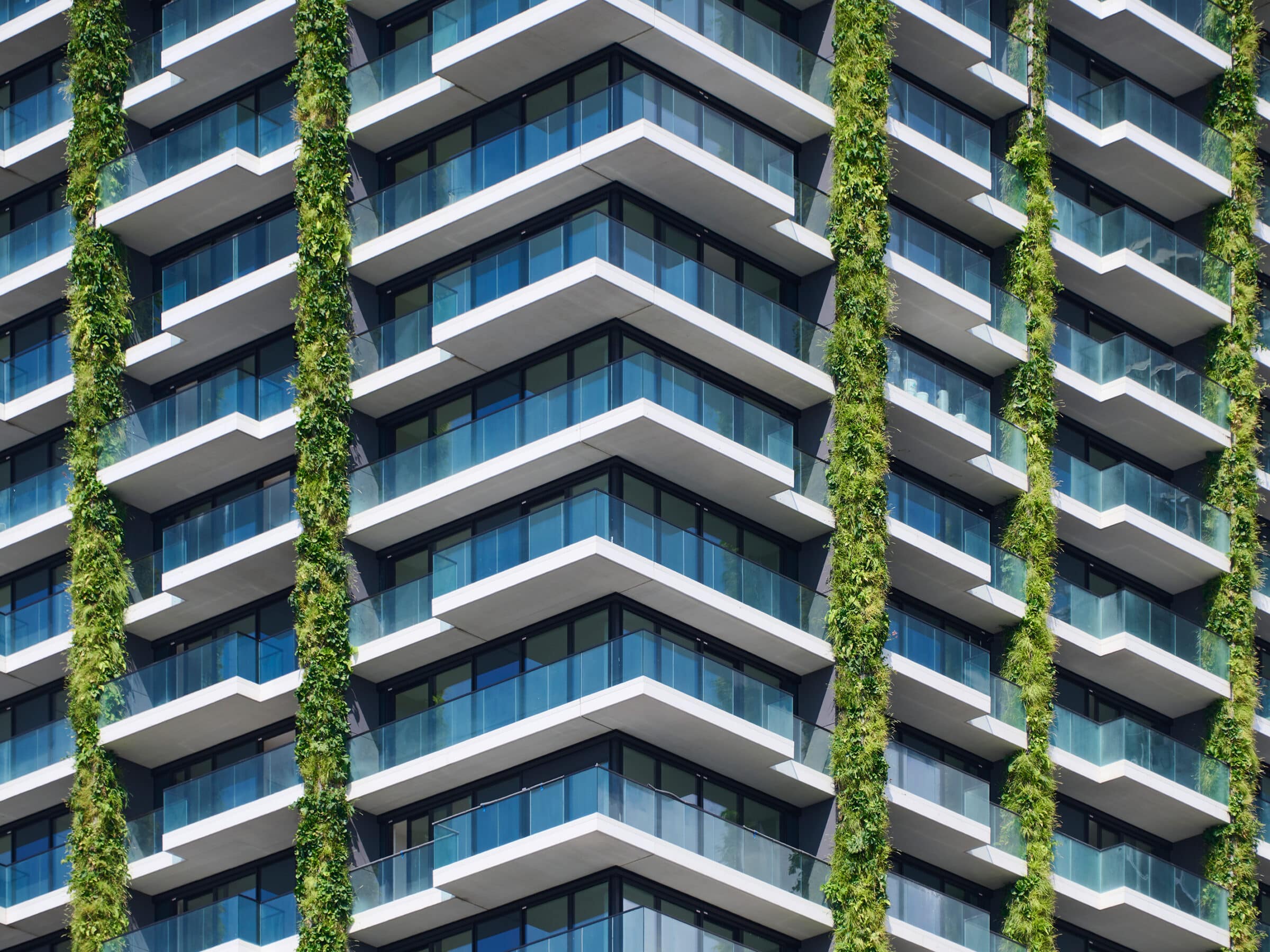 Residential tower ‘Eden Tower‘ reaches up to 98 meters. The SemperGreenwalls comprise a total of 185,000 plants, spread over more than 2,000 m². This is almost 3 times more surface area than the ground on which the building is standing! Designed by architects Helmut Jahn and Magnus Kaminiarz, the iconic project enjoys a fantastic central location in Frankfurt’s business district. In a city that, like many others, increasingly consists of built environment, vertical gardens are the way to bring greenery back into the gray. The quality of living and working in the building itself and its surroundings was central to developer Immobel Group. The building combines impressive architecture with brightness and lush greenery. Vertical gardens merge with the glass facades to create a living masterpiece.