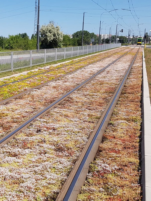As early as 1930, the capital, Warsaw began sowing grass on the tramway. In 2017, the municipality switched to Sedum, because of its low maintanance and quick and easy installation. In addition to Warsaw (and Wrocław), Poznán is also greening its tramways. It is a relatively simple way to make a city greener and more sustainable. In Poznań, the tram network comprises 20 lines and spreads over approximately 66 kilometres on standard gauge. So there is a lot of urban green to be achieved.