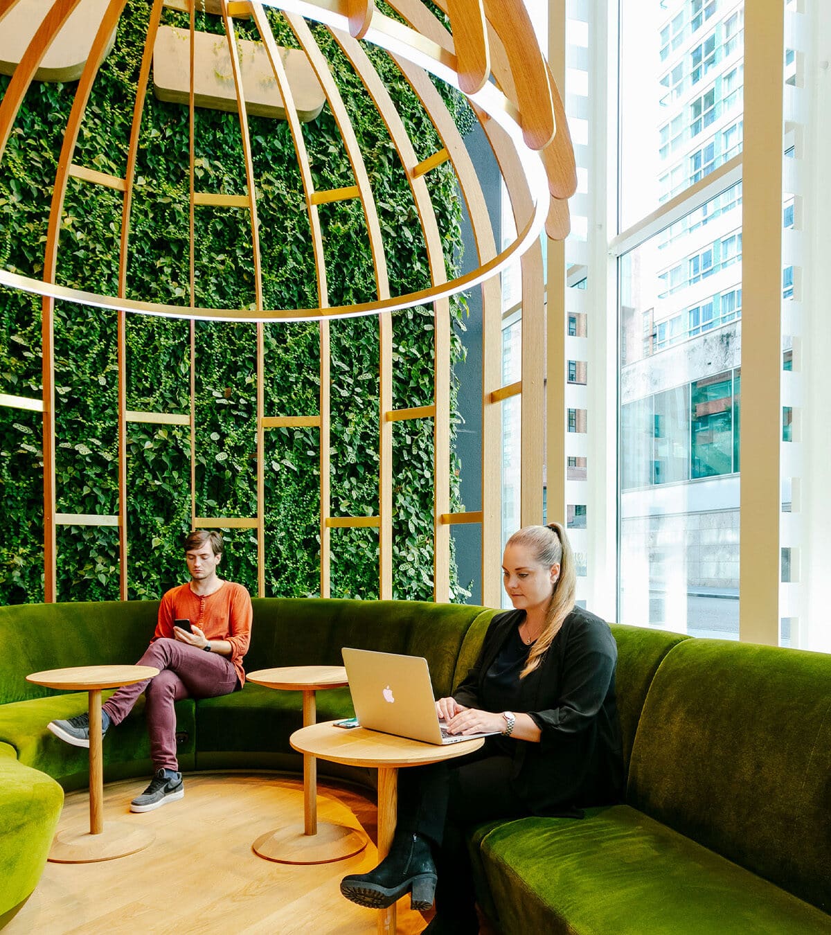 Green façades reduce stress, improve acoustics and create a more pleasant space to work and meet.