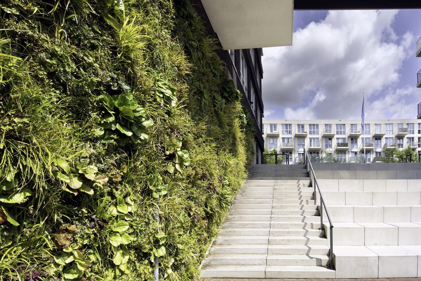 The SemperGreenwall improves air quality by filtering fine dust and CO₂ while producing oxygen.