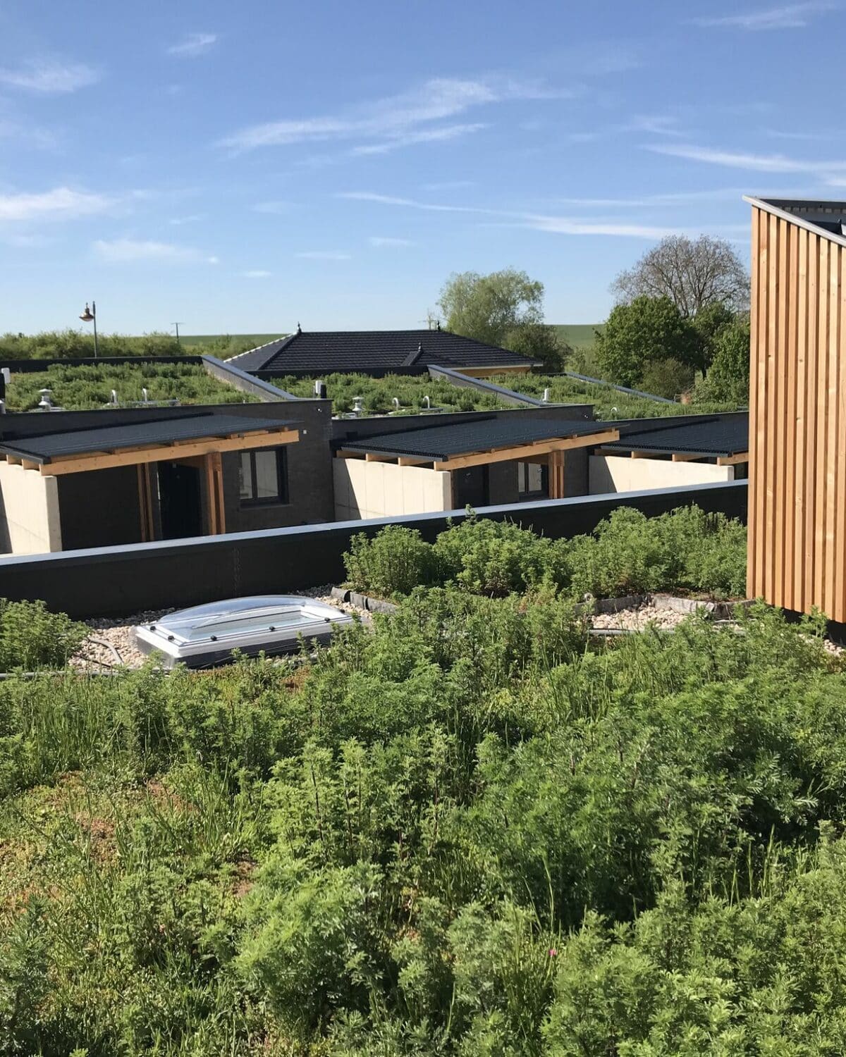 Zielone dachy wzbogacają środowisko naturalne Firma Sempergreen France dostarczyła 450 m² mat z rozchodnikiem i ziołami na zielone dachy w ramach tego projektu. Zielone dachy są dobrze widoczne z poziomu ulicy dzięki wysokiej roślinności i lekko nachylonym powierzchniom dachowym, co sprawia, że domy dobrze komponują się z otoczeniem. Różnorodność rozchodników i ziół przyciąga wiele pszczół i motyli, przyczyniając się tym samym do zwiększenia bioróżnorodności.