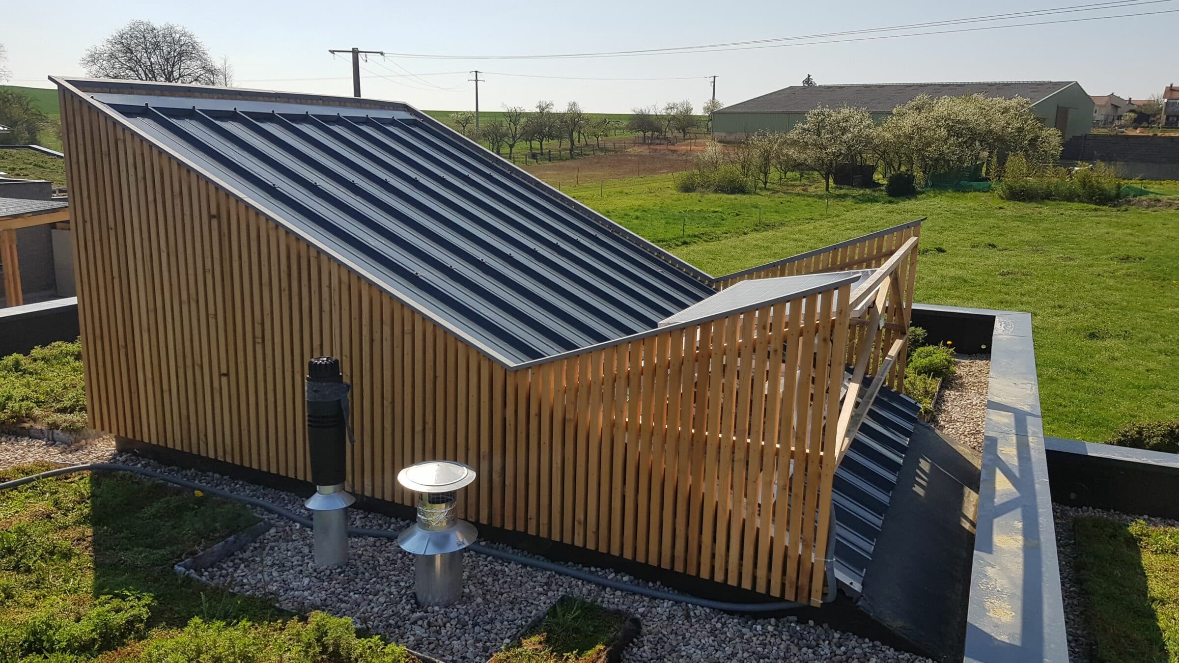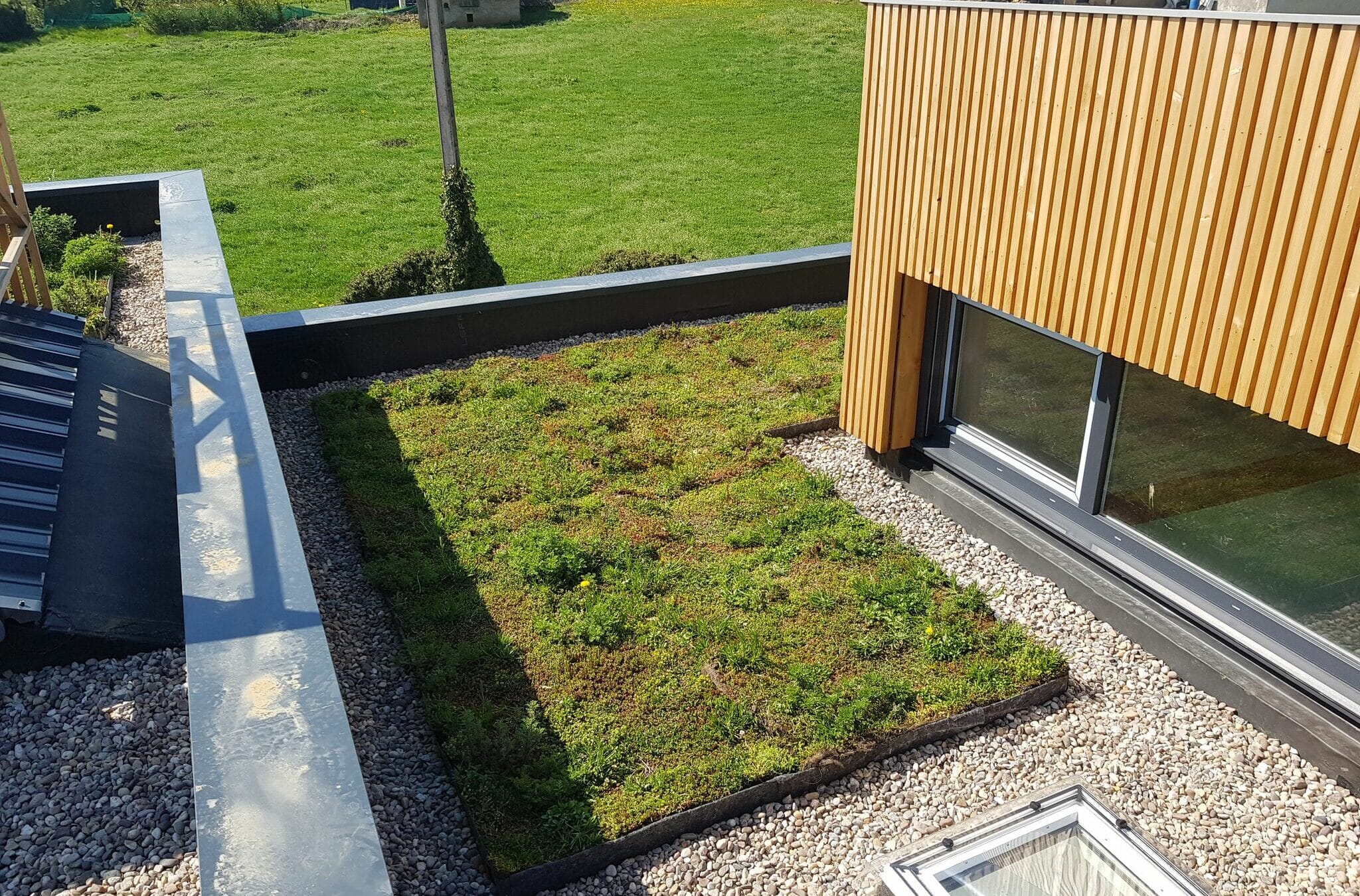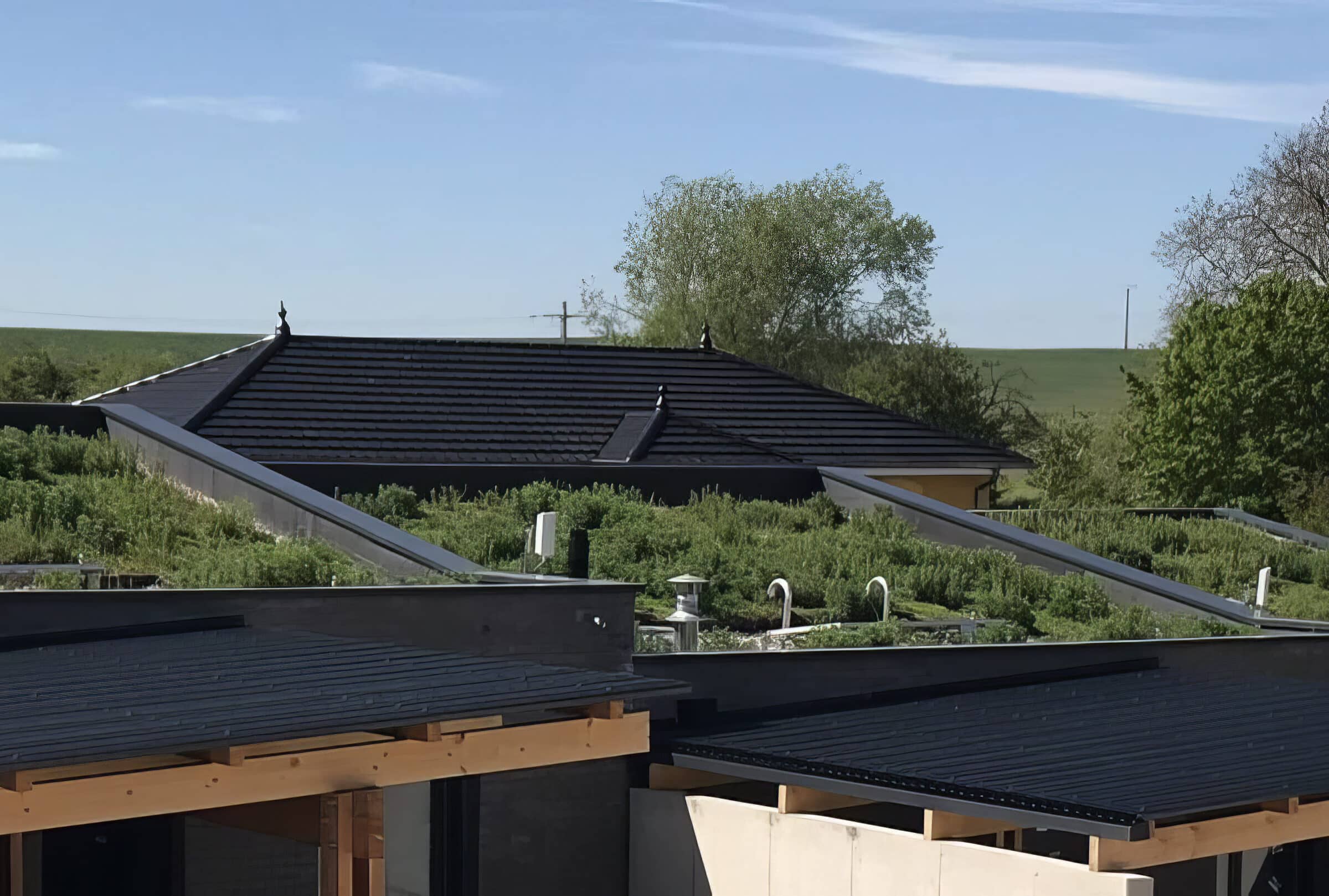 Każda część dachu wnosi swój wkład. Woda deszczowa jest buforowana, a natura ma przestrzeń do rozwoju.