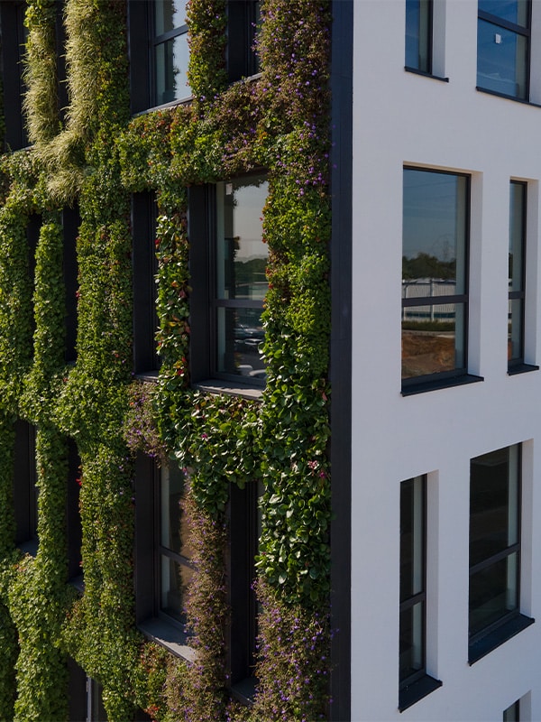 Żywe ściany filtrują powietrze, zmniejszają stres cieplny i wspierają bioróżnorodność.