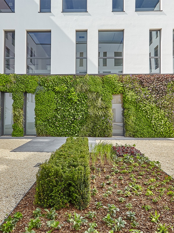 Za rozległymi zielonymi fasadami kryje się historia skrupulatnego planowania. Firma GDL Belke GmbH, która zaprojektowała i wykonała instalację, musiała zintegrować pionowe ogrody z 63 indywidualnymi otworami okiennymi. Dzięki elastyczności paneli Flexipanels, elementów konstrukcyjnych SemperGreenwall, każdy otwór można było płynnie zintegrować bez naruszania rytmu projektu lub kompromisów w zakresie wodoodporności i izolacji. Sama fasada została skonstruowana jako ściana osłonowa ze 180 mm izolacją mineralną, łącząc efektywność energetyczną z odpornością. Rezultatem jest fasada, która łączy architekturę i zieleń bez kompromisów.