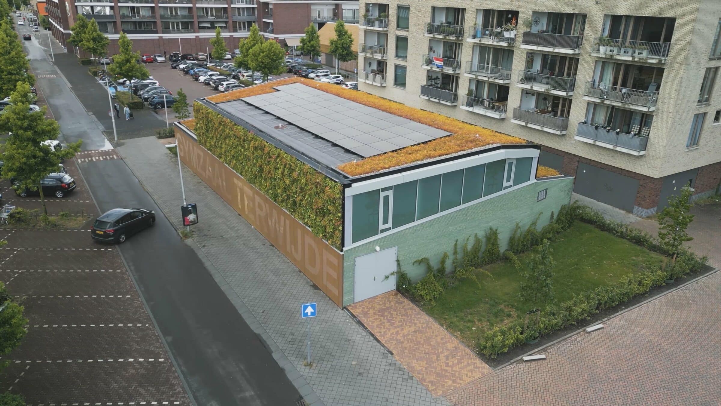 Zielone dachy gimnazjum Terwijde nadają budynkowi dodatkowy wymiar zrównoważonego rozwoju. Pokryte bujną roślinnością zielone dachy zmniejszają absorpcję ciepła, poprawiają jakość powietrza oraz pomagają zatrzymywać i odprowadzać wodę deszczową. Przyczynia się to do zrównoważonego gospodarowania wodą w mieście i pomaga w zapobieganiu powodziom.