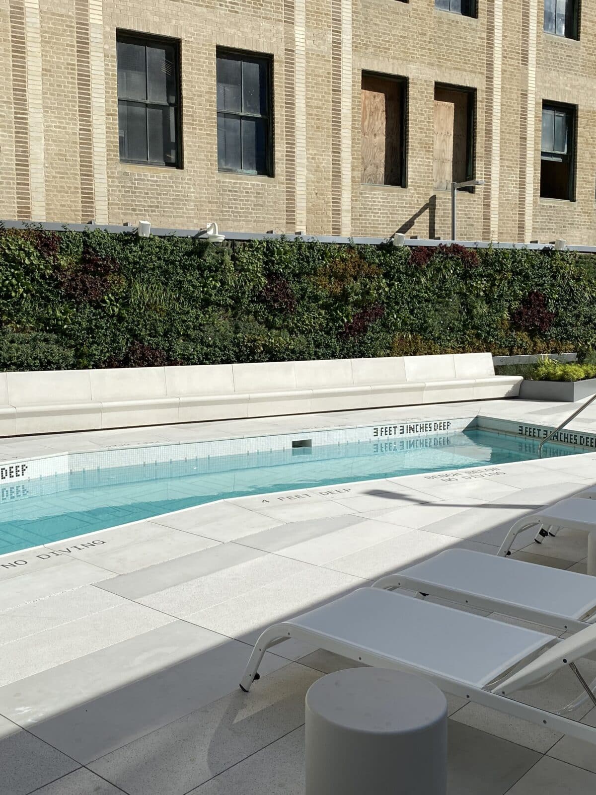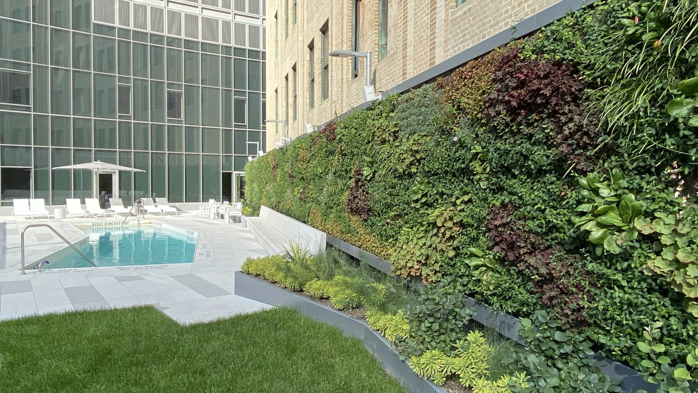 Odkryj The Sven! Ten luksusowy wieżowiec w Nowym Jorku posiada oszałamiającą ścianę zewnętrzną SemperGreenwall, która łagodzi miejski krajobraz. Nasze byliny o zimnym klimacie zapewniają 753 m² całorocznej zieleni na patio przy basenie.