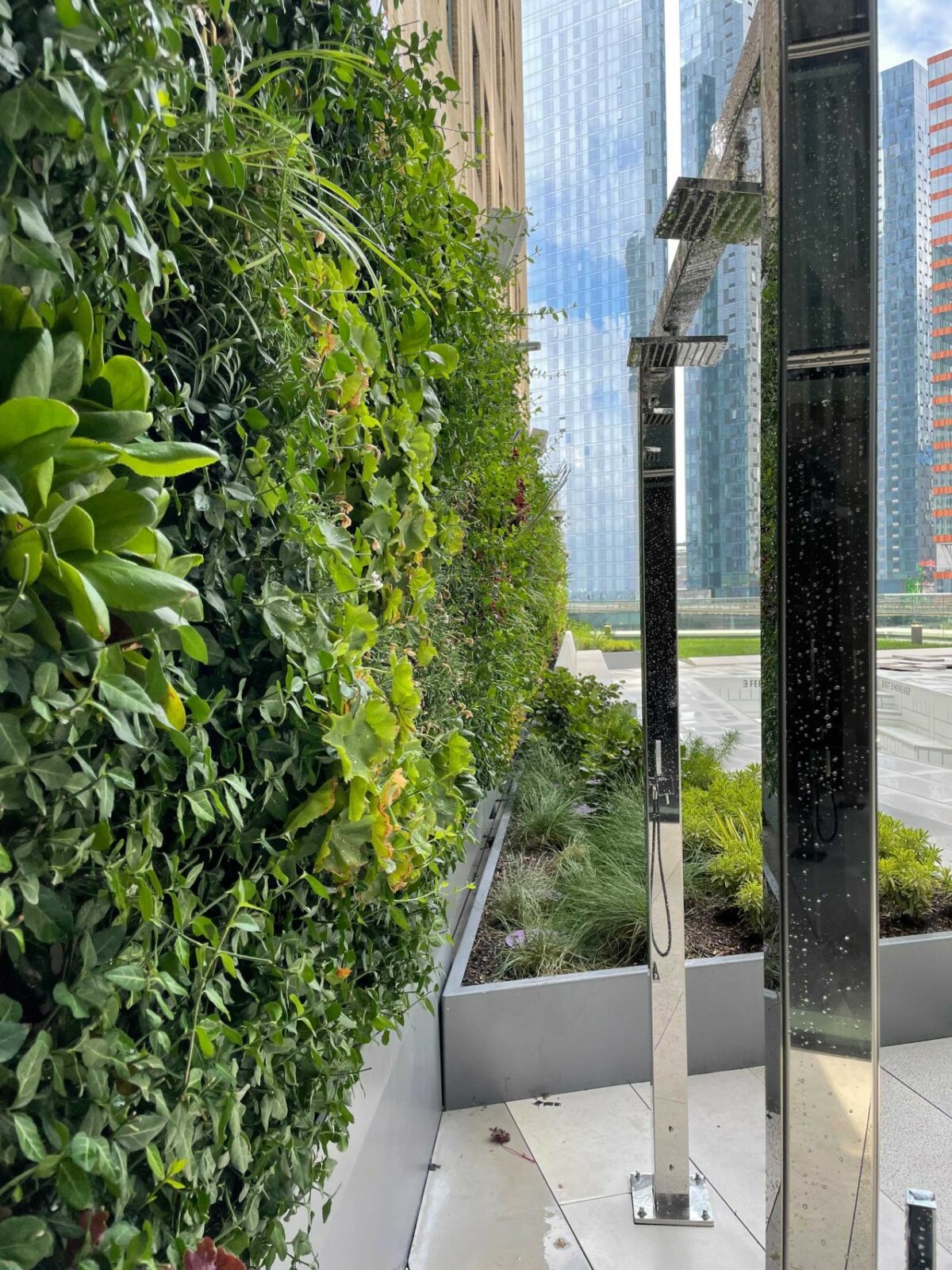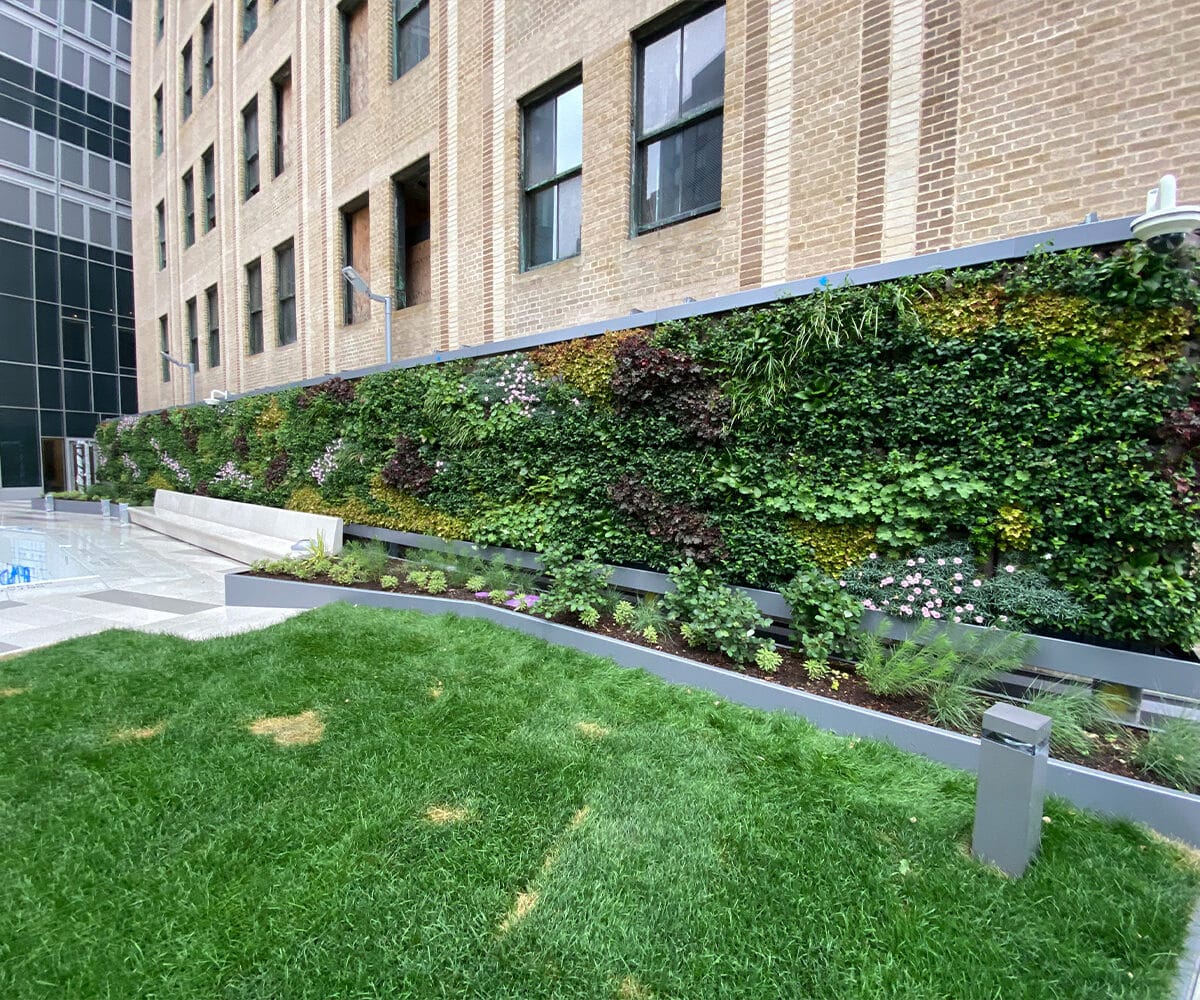 Handel Architects, Selldorf Architects oraz Starr Whitehouse Landscape Architects and Planners zaprojektowali ten piękny projekt na budynku z certyfikatem LEED Platinum. Dwa otaczające końce, stworzone z gotowych paneli Flexipanels, sprawiają wrażenie, jakby ta żywa ściana nie miała końca. Pionowe rozwiązanie pomaga stworzyć kawałek natury w zabudowanym środowisku, nawet jeśli dostępna przestrzeń jest niewielka. Szczególnie w tak dużym mieście zwiększenie obecności roślin i natury jest niezwykle ważne, aby zmniejszyć zanieczyszczenie, hałas ruchu ulicznego i wysokie temperatury. Naturalne rozwiązania, takie jak żywe ściany, mogą oczyszczać powietrze, zapewniać lepszą izolację termiczną i poprawiać samopoczucie osób mieszkających w pobliżu terenów zielonych.