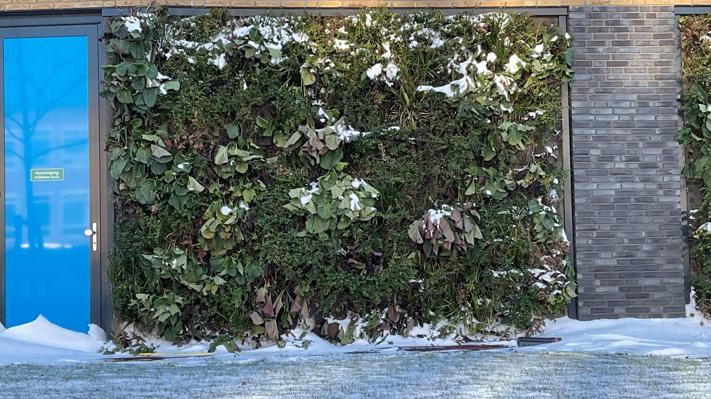 Rośliny potrzebują kilku czynników, żeby przetrwać zimę. Podstawą jest dobór roślin. Żeby ściana wyglądała ładnie zimą, wybrano różne gatunki roślin. Dzięki połączeniu roślin odpornych i wiecznie zielonych ściana zachowuje ładny zielony wygląd nawet zimą. Jak wszystkie żywe rośliny, zmieniają kolor wraz z porami roku. Dzięki temu zielona ściana ładnie komponuje się z otaczającą przyrodą o każdej porze roku. Poniższe zdjęcia pokazują różnicę między żywą ścianą jesienią a wiosną.