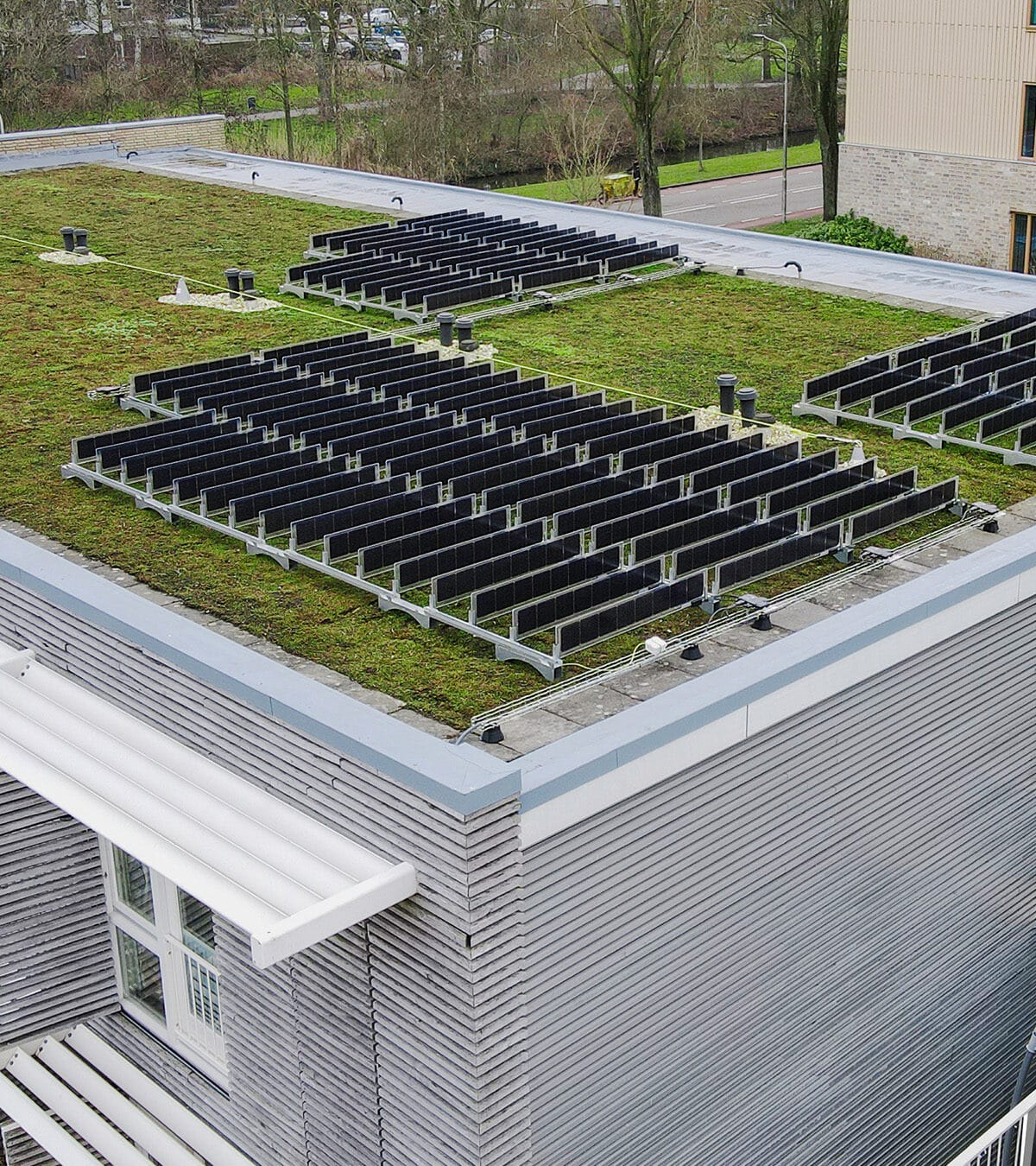 En enero de 2025 se hizo historia en Amstelveen. La comunidad de propietarios Maccabiadelaan completó un proyecto revolucionario: el primer tejado verde de los Países Bajos combinado con las innovadoras unidades Over Easy Solar (OES).