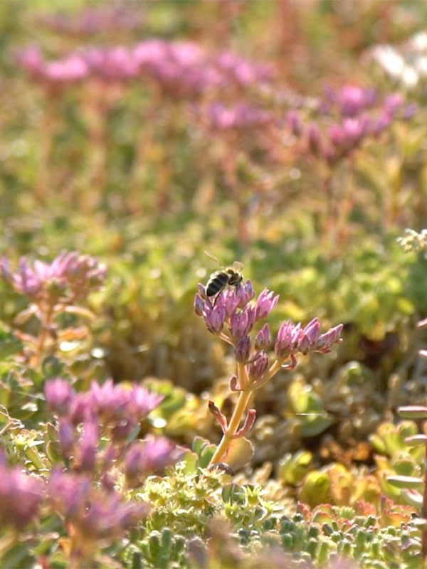 Un plan de plantación variado atrae a polinizadores, aves e insectos autóctonos. Esto convierte el tejado en un próspero ecosistema.