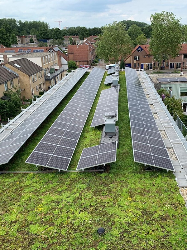 En otros proyectos de la asociación de viviendas Jutphaas Wonen, en los que también se han instalado cubiertas verdes combinadas con paneles solares, la empresa inmobiliaria decidió financiar los paneles por su cuenta. «De esta forma, no necesitamos la aprobación de los inquilinos, lo que se traduce en un enfoque rápido y eficiente y en la realización de proyectos sostenibles», afirma Frans Bouwman, director de proyectos inmobiliarios de Jutphaas Wonen.