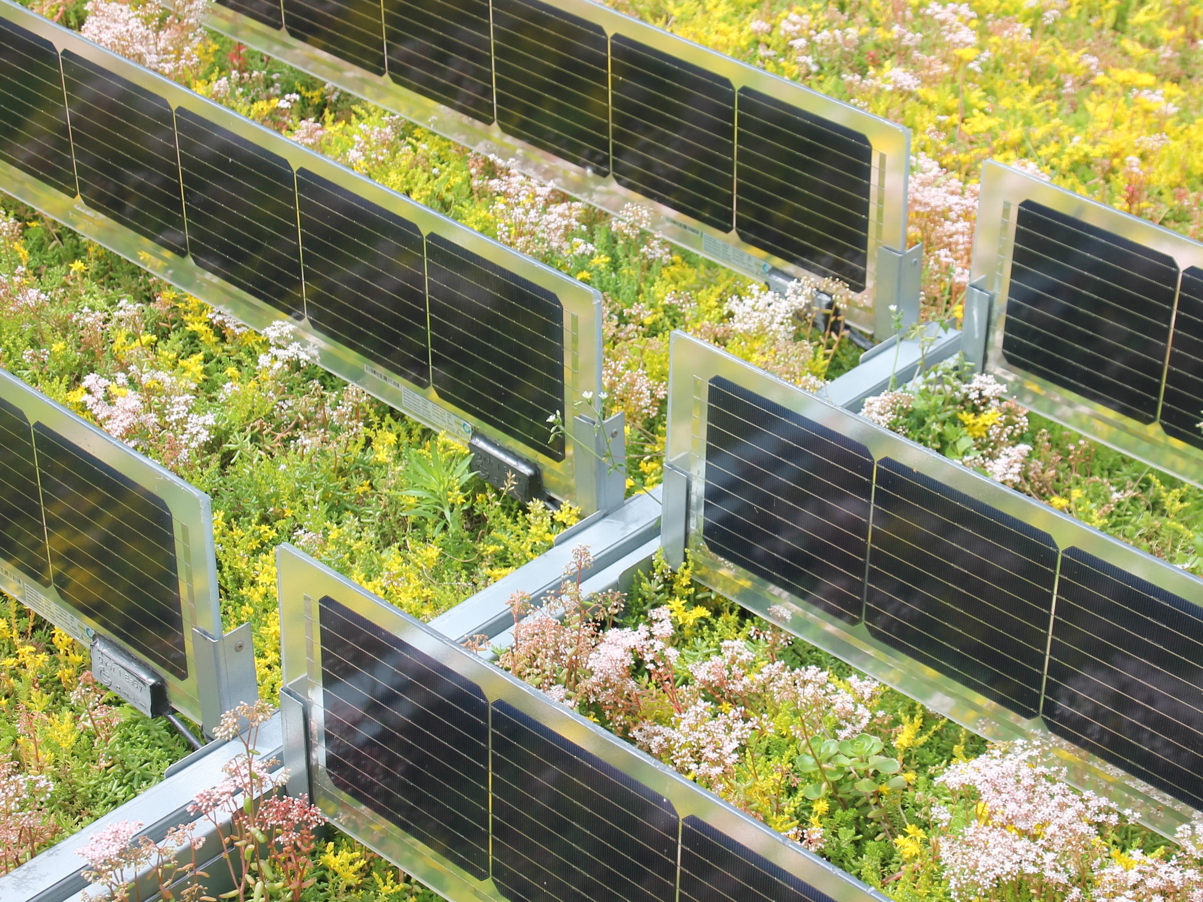 Junto con nuestro socio Over Easy Solar, también presentaremos nuestro sistema Solar Green Roof. Esta solución inteligente combina vegetación y paneles solares en un sistema integrado.