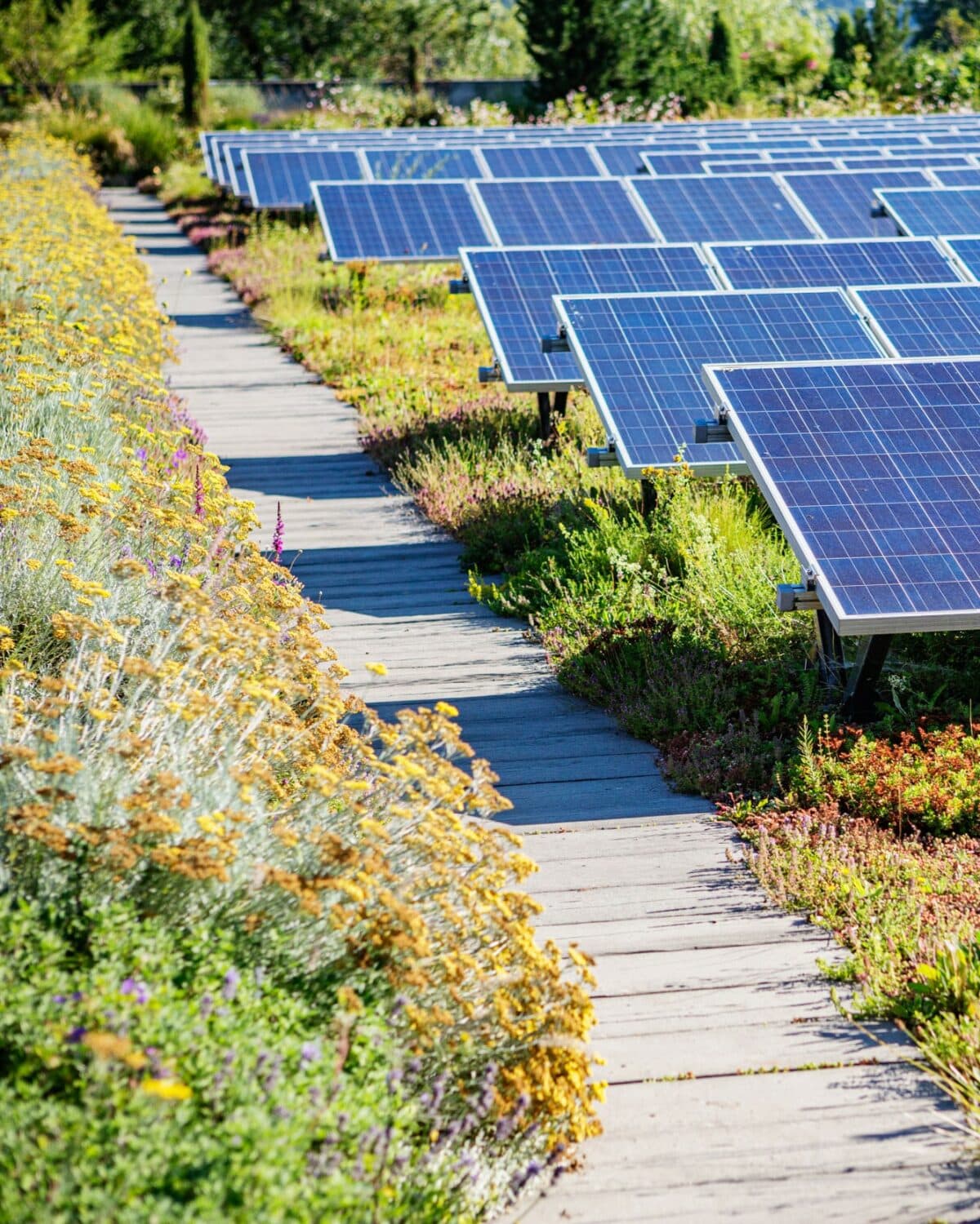 Los tejados verdes crean un clima más fresco alrededor de los paneles, lo que aumenta la producción de energía hasta un 40%.