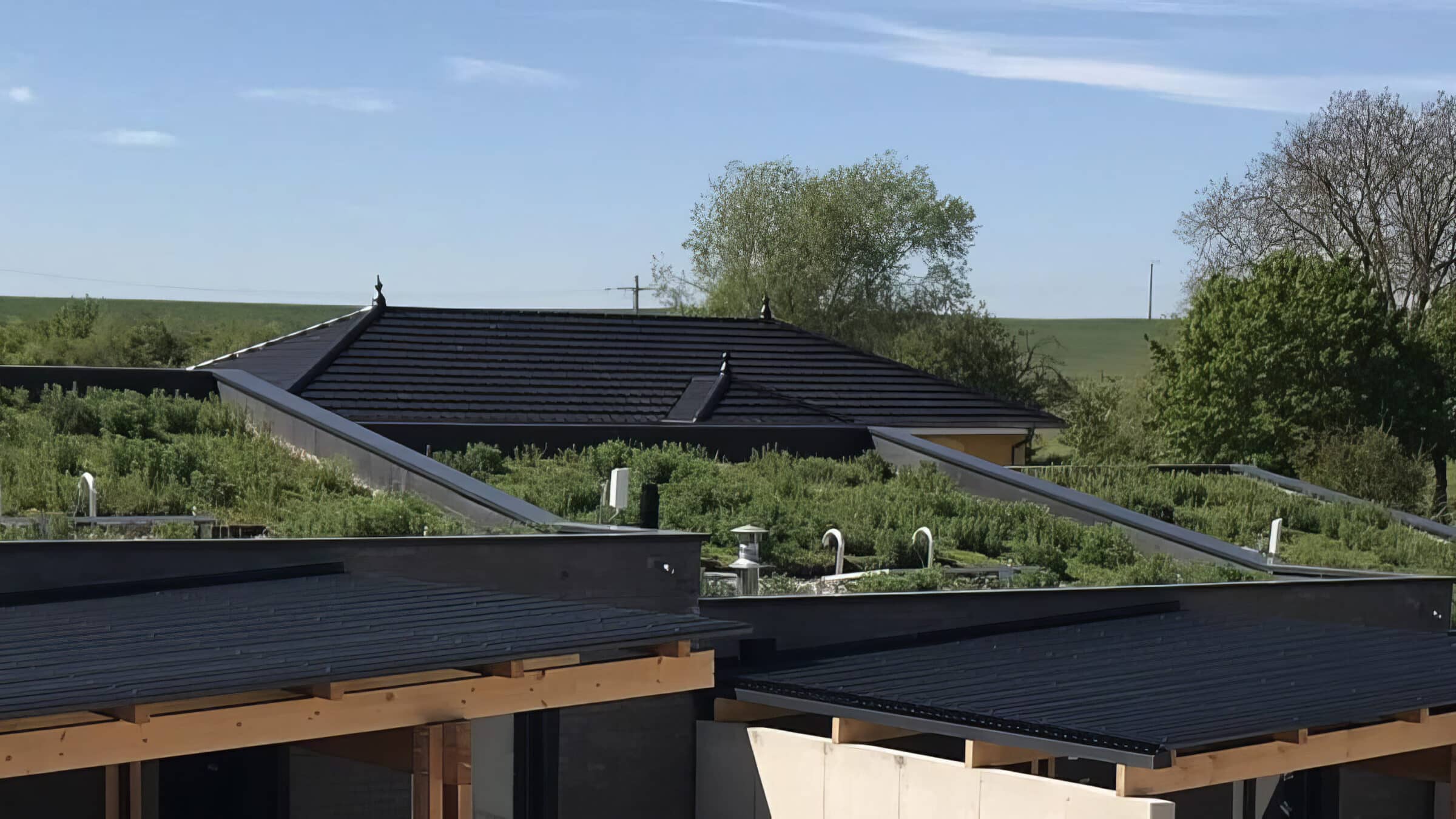 Una simple cubierta de Sedum ya favorece la ecología local y puede mejorarse con paquetes de biodiversidad. Las cubiertas biodiversas con una variedad de plantas con flores y hierbas enriquecen aún más la naturaleza y añaden un valor ecológico visible a su proyecto. El sistema adecuado depende siempre de la capacidad de carga del tejado y de los objetivos del proyecto.