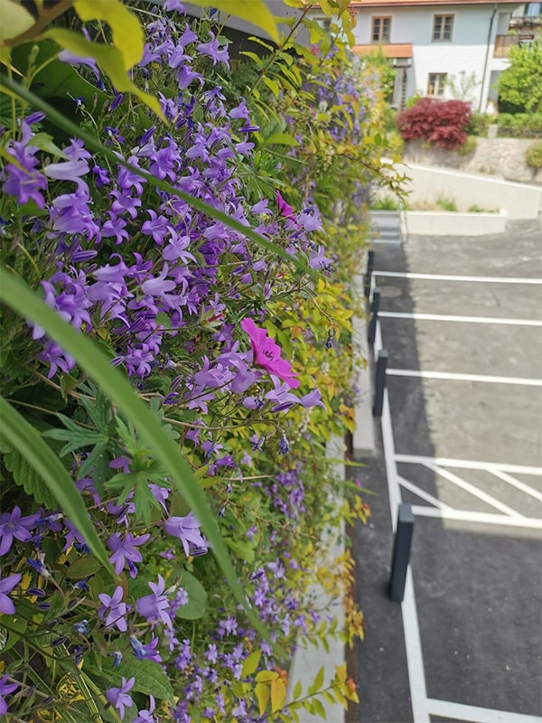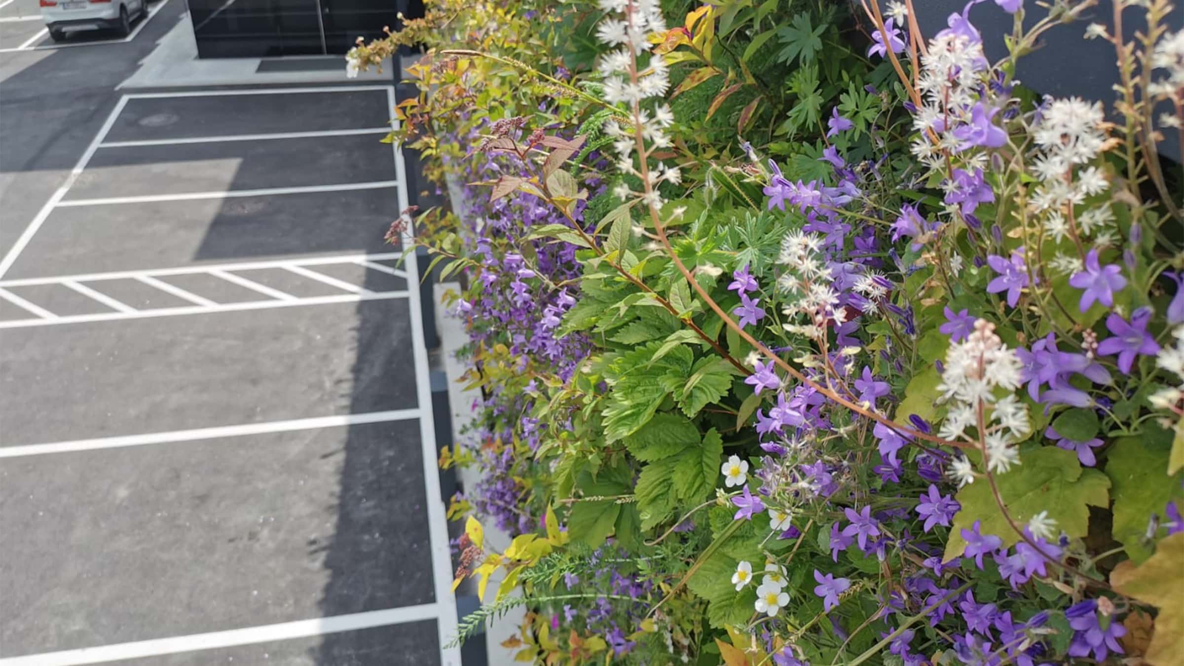 Installed in October 2019, the SemperGreenwall covers 46 m² of the building’s sun-facing façade. The wall was pre-grown with a carefully selected mix of outdoor plants, cultivated in Sempergreen’s nurseries to thrive in the Austrian climate. The vegetation naturally regulates temperature, reduces noise and filters pollutants, turning the building into a quiet, cleaner and cooler oasis within the village centre.