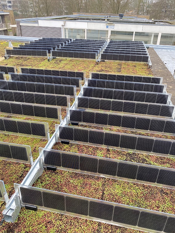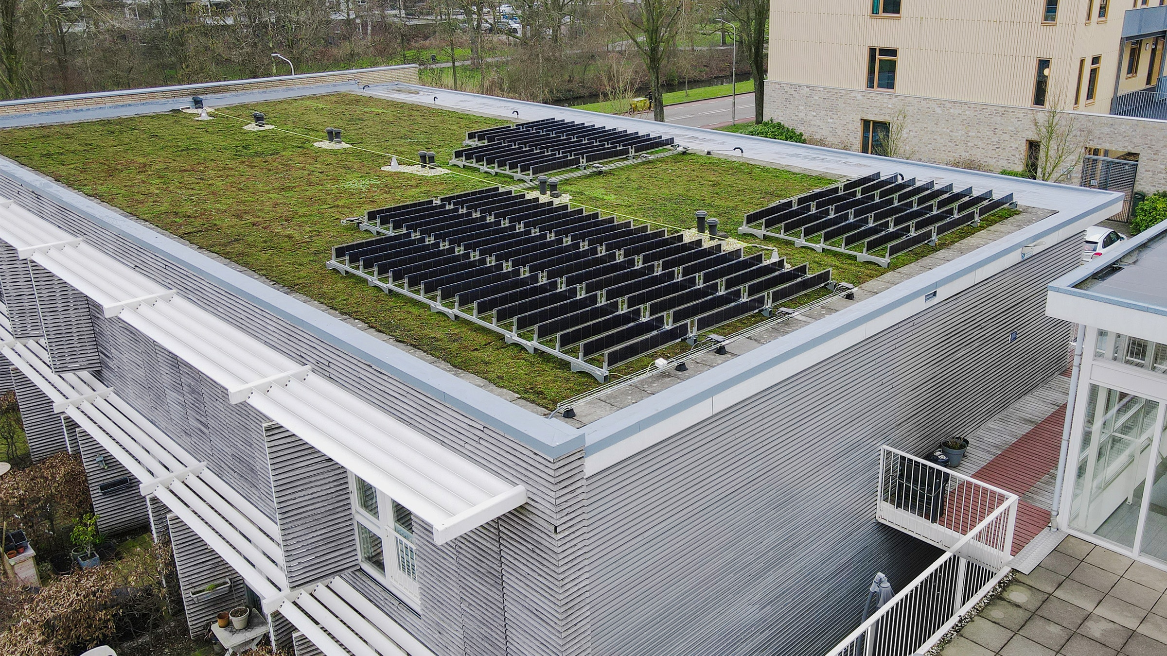 En enero de 2025 se hizo historia en Amstelveen. La comunidad de propietarios Maccabiadelaan completó un proyecto revolucionario: el primer tejado verde de los Países Bajos combinado con las innovadoras unidades Over Easy Solar (OES).
