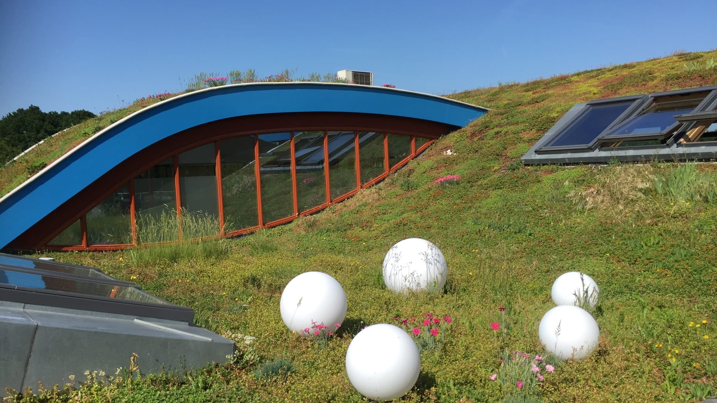 De este modo, una cubierta verde Biodiversa se convierte en algo más que una simple pieza de vegetación: actúa como un trampolín, conectando hábitats fragmentados a través de paisajes urbanos. Y con la opción de sistemas estándar y ligeros, las cubiertas biodiversas pueden instalarse en estructuras planas o inclinadas por igual, incluso en lugares con capacidad de carga limitada. El resultado es un ecosistema vivo y funcional que enriquece al edificio y a la comunidad en general, como en el club de golf Krommerijn.