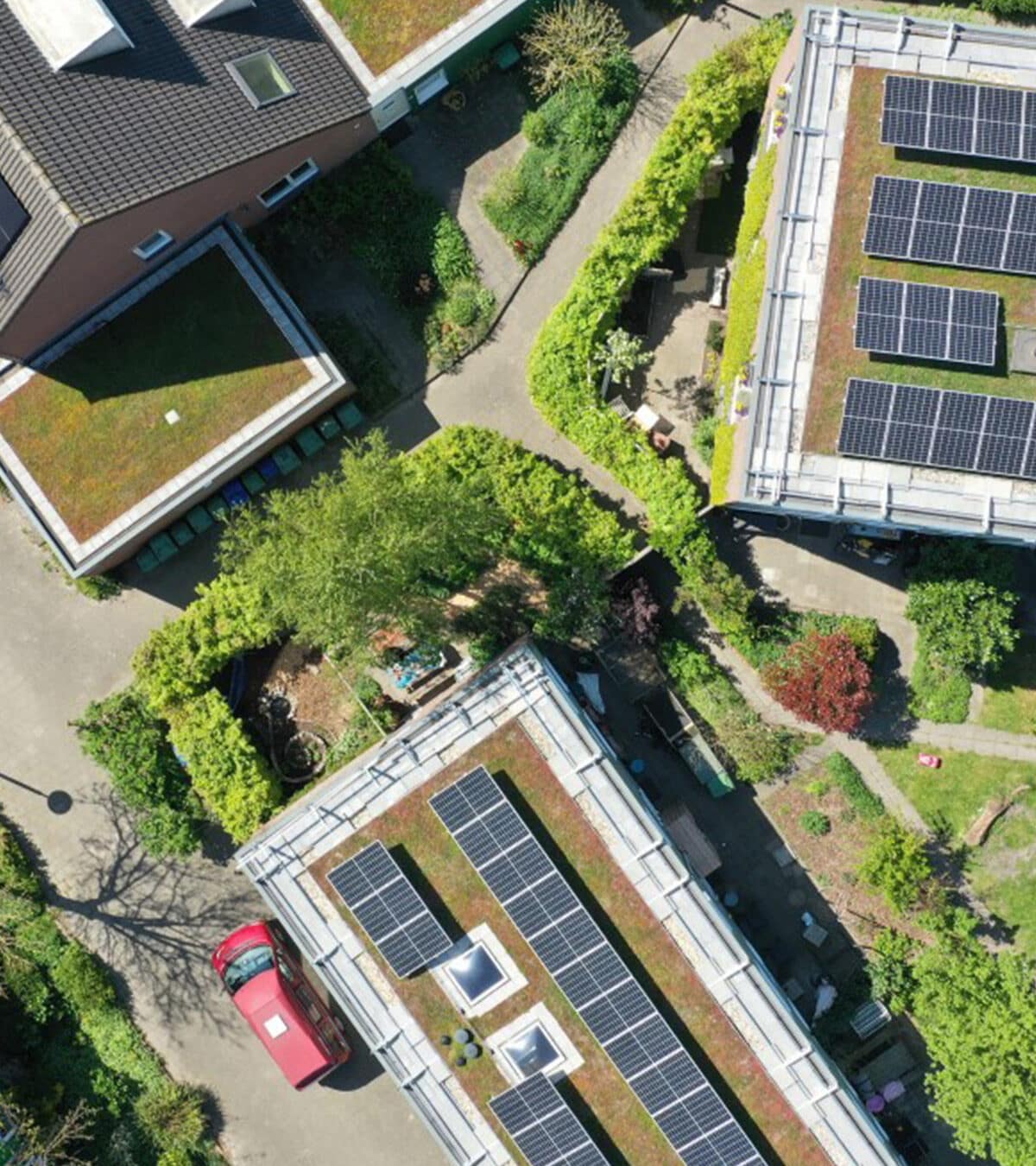 Además de generar energía renovable, el techo solar Sedum contribuye de manera importante a la biodiversidad local. Las plantas Sedum mejoran el hábitat de insectos, mariposas y aves, especialmente en el entorno pavimentado de la ciudad. El techo verde sirve de puente entre los jardines y los parques de la zona urbanizada. Además, el techo solar Sedum contribuye positivamente a la calidad del aire, el clima, la gestión del agua y el entorno de vida de los residentes de la ciudad. Esto también se refleja en las entusiastas respuestas de los inquilinos de Jutphaas Wonen, que tienen vistas a los techos solares Sedum situados más abajo.
