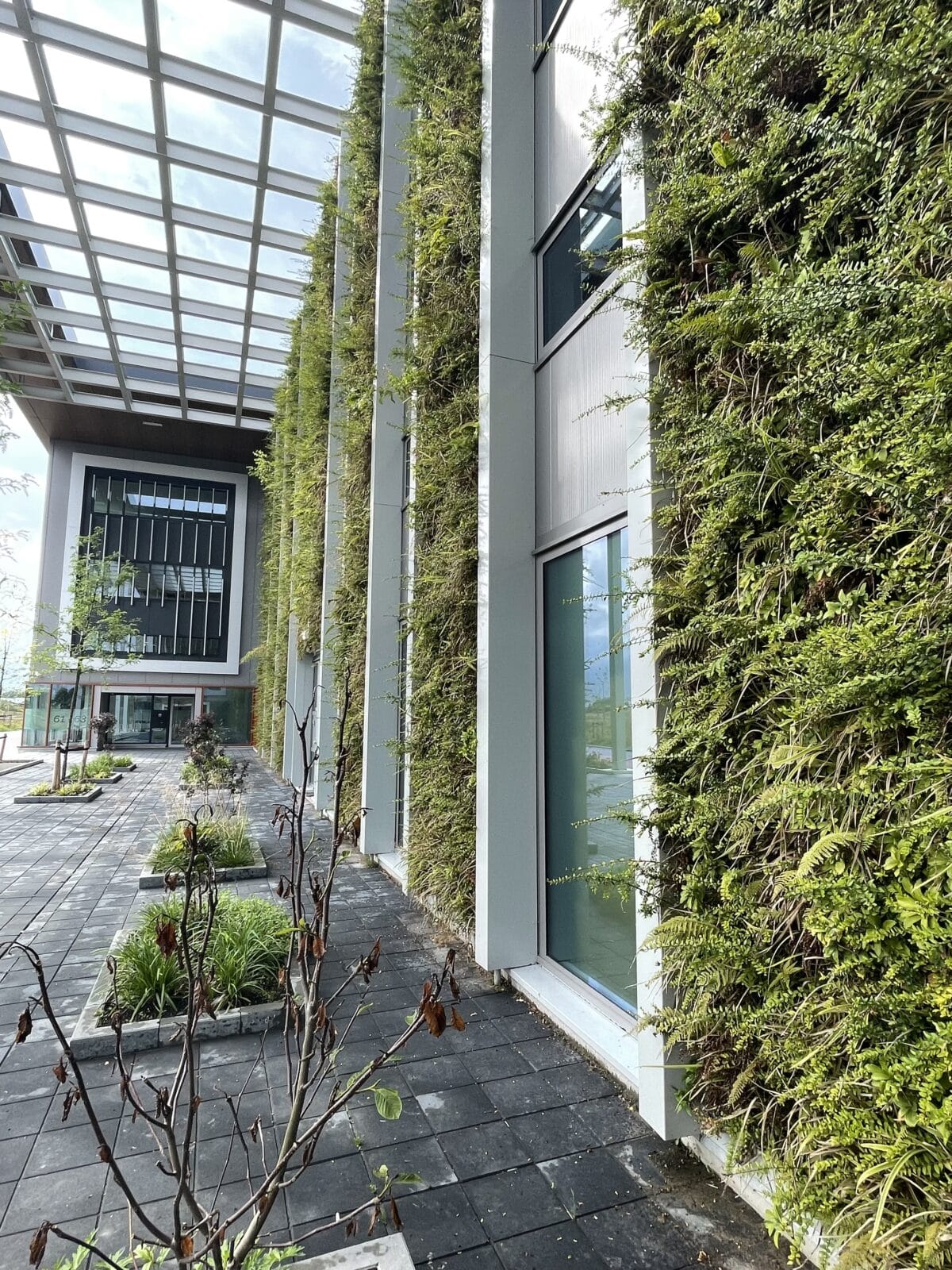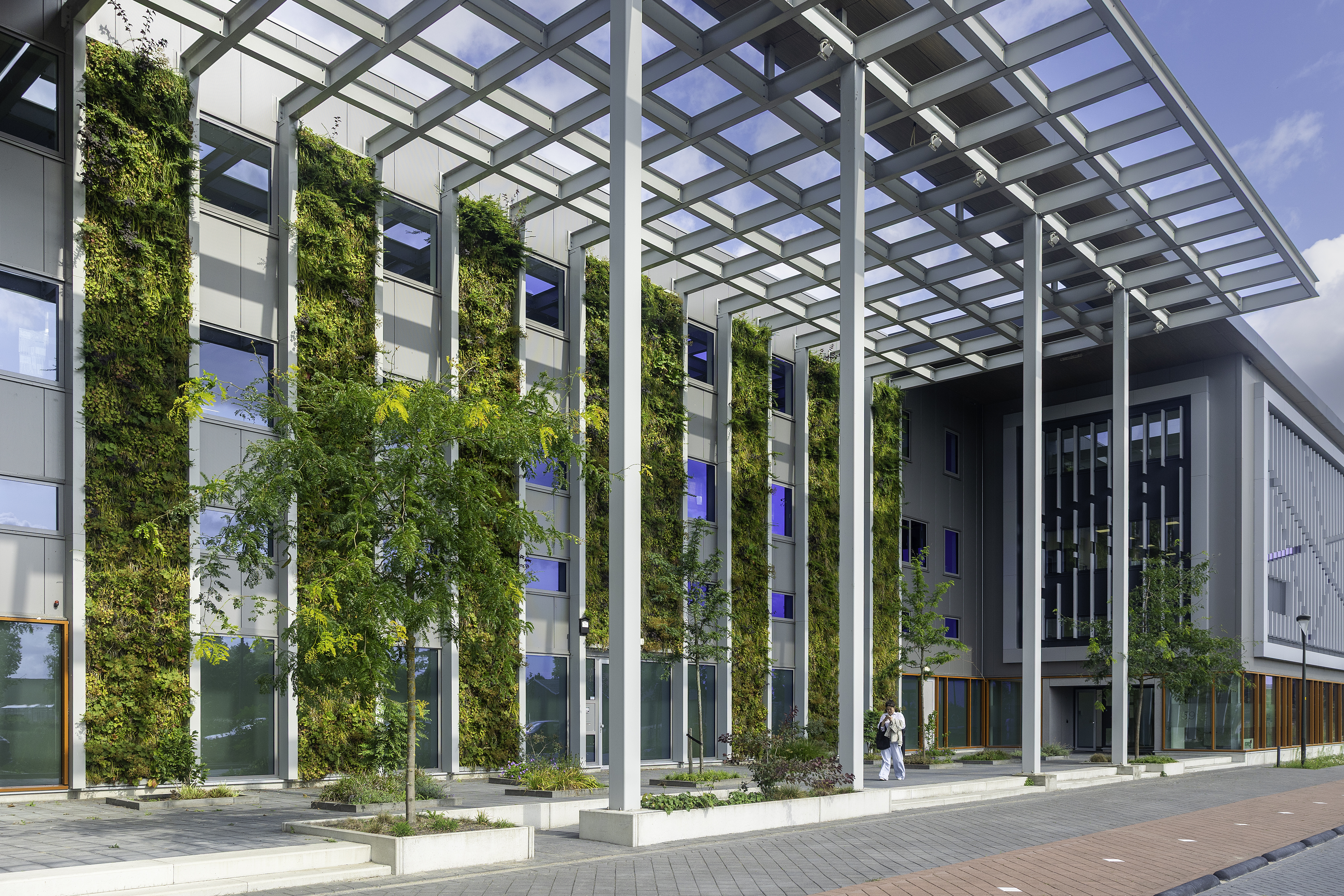 El nuevo edificio se caracteriza por el uso de materiales circulares, mucha luz natural y zonas verdes. Los muros SemperGreenwall, de 12 metros de altura cada uno, cubren una superficie total de 156 m², lo que confiere al edificio un aspecto sostenible y verde. Las fachadas verdes no sólo tienen valor estético, sino que también contribuyen a la biodiversidad local, a un aire más limpio y a refrescar el ambiente. Las fachadas verdes están equipadas con un sistema de cuidado de plantas basado en la web, que suministra automáticamente a las plantas la cantidad correcta de agua y nutrientes.