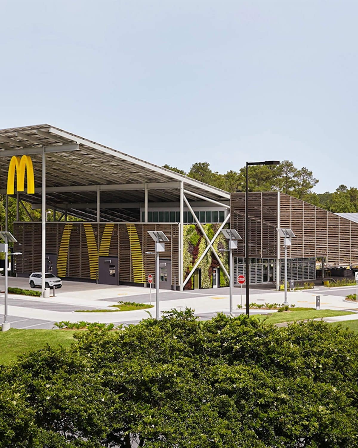 McDonald's ha abierto un nuevo y sostenible restaurante insignia en el corazón de Walt Disney World, en Orlando (Florida). Con este restaurante piloto, McDonald's pretende ser el primer restaurante de comida rápida del mundo con consumo energético neutro. Para contribuir a un aire más limpio, estimular la biodiversidad y reducir la temperatura ambiente, Ross Barney Architects optó por instalar casi 185 m2 de muros vegetales SemperGreenwall.