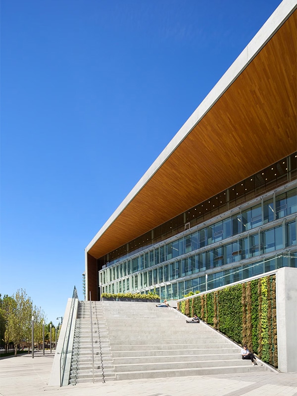 La fachada verde de la entrada del edificio es una representación física del cuidado del medio ambiente y la responsabilidad sostenible que persigue el municipio de Surrey. La combinación de helechos y gramíneas en el esquema vegetal confiere a la fachada verde un aspecto especial.