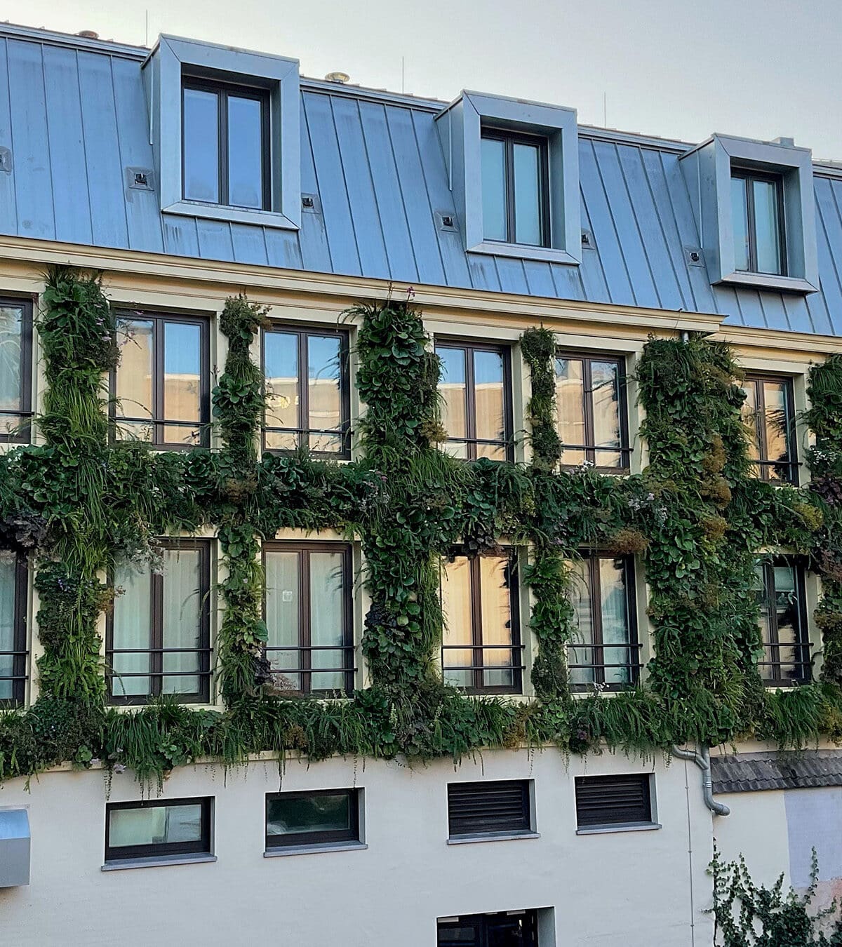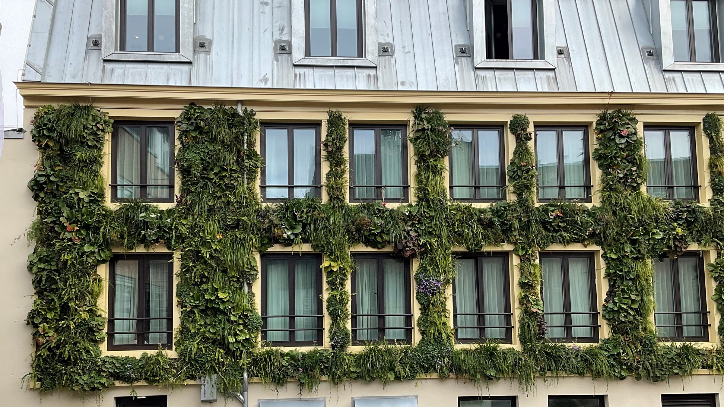 Las habitaciones boutique del hotel están decoradas con un toque moderno. En la parte trasera, el monumental edificio cuenta con un exuberante muro SemperGreenwall exterior. Contribuye al aislamiento del edificio, reduciendo la temperatura ambiente y el ruido en el patio. Además, un jardín vertical aporta verdor a la ciudad, garantizando un aire más limpio y más biodiversidad, por ejemplo.