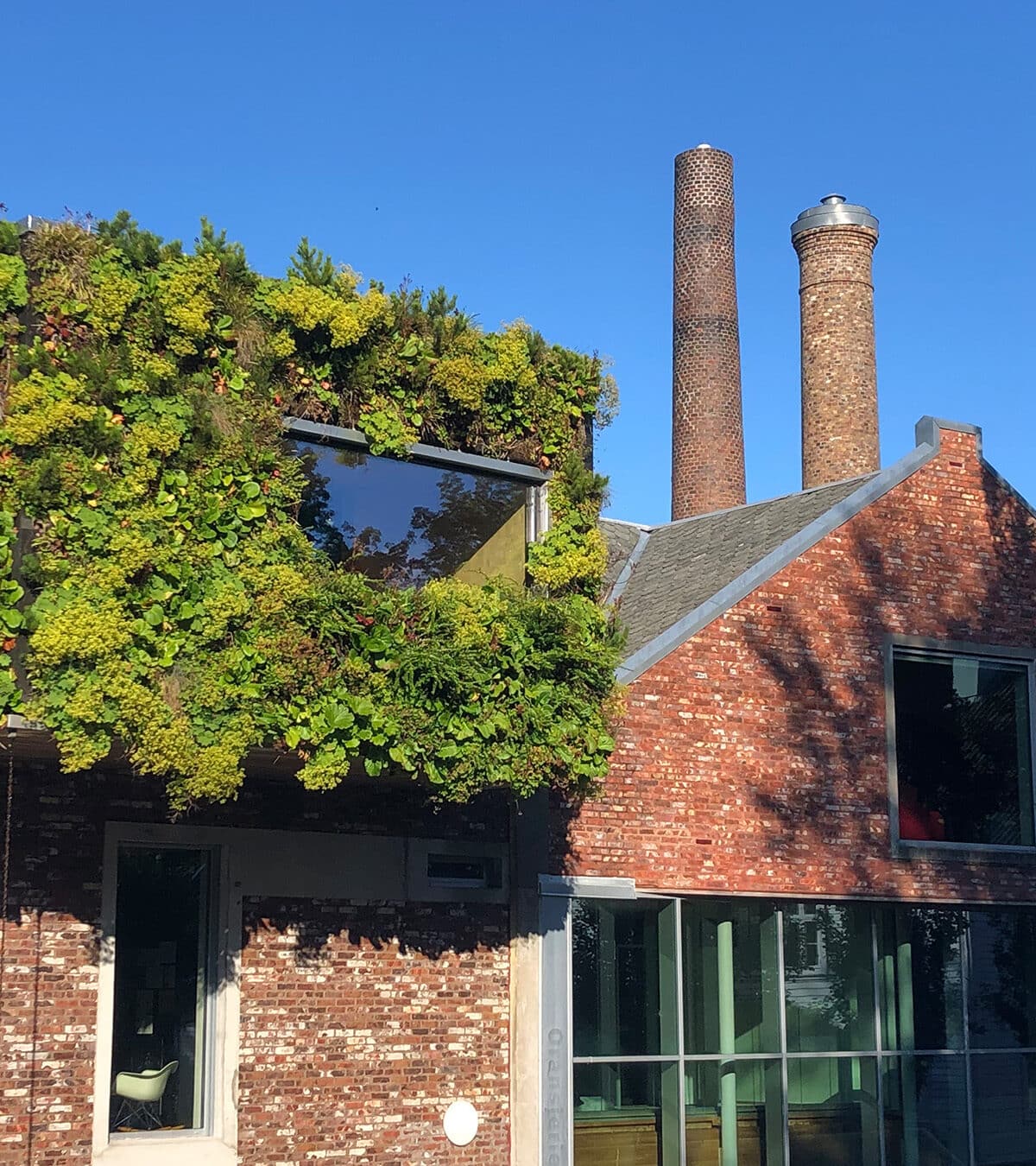 Bark Arkitekter, de Stavanger (Noruega), ha transformado un edificio industrial en su propio edificio de oficinas. Se han conservado los elementos originales del antiguo edificio. El exterior de la parte nueva del edificio está equipado con una fachada verde. Esto crea un ambiente especial.