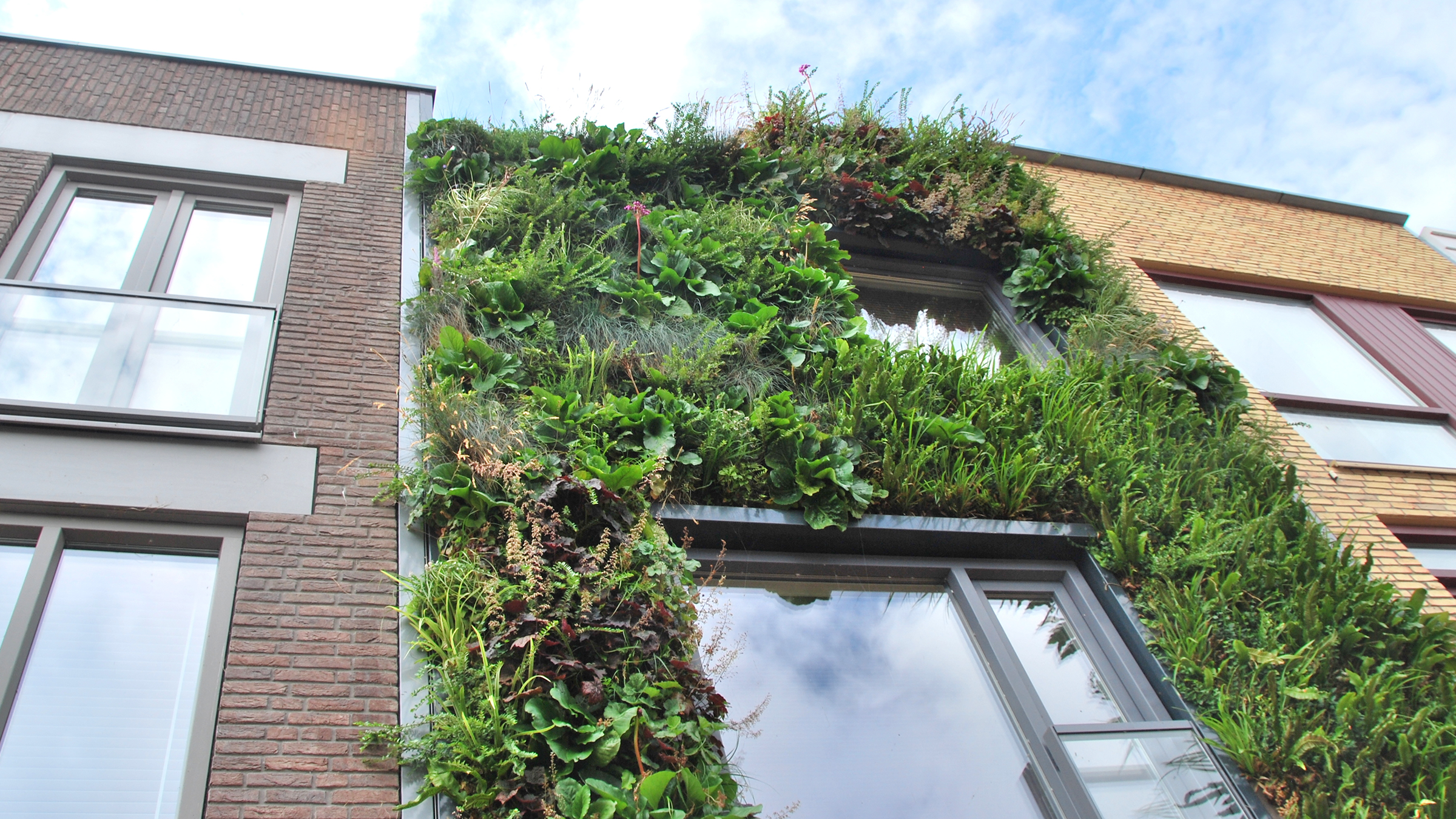 Este muro vivo es el primer muro verde de propiedad privada en un proyecto de viviendas en serie en los Países Bajos. Contiene más de 4.000 plantas, 36 especies, y crea un atractivo espacio para abejas, mariposas y abejorros en la nueva urbanización.