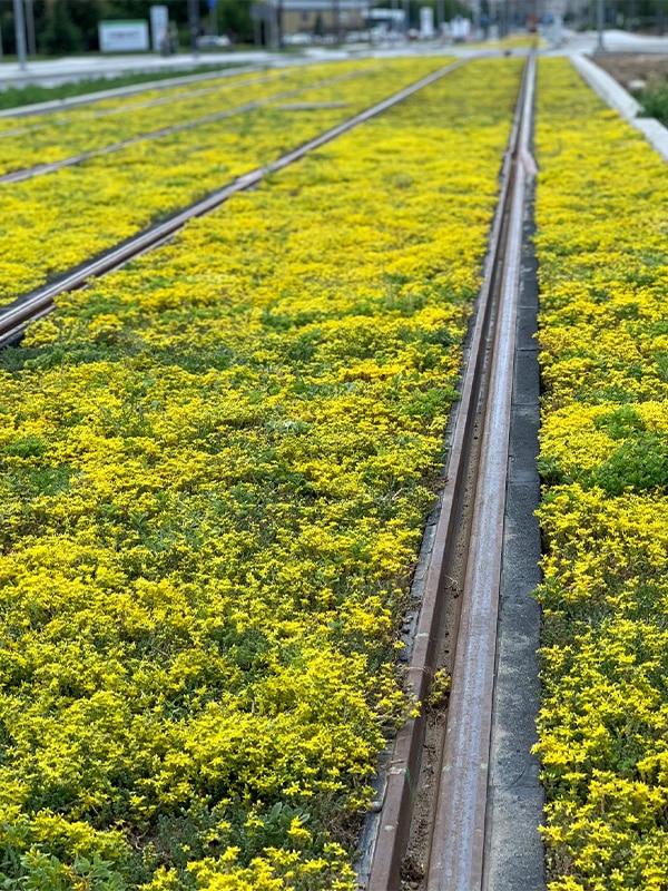 Ya en 1930, la capital, Varsovia, empezó a sembrar césped en el tranvía. En 2017, el municipio se pasó al Sedum, por su bajo mantenimiento y su instalación rápida y sencilla. Además de Varsovia (y Wrocław), Poznán también está reverdeciendo sus tranvías. Es una forma relativamente sencilla de hacer una ciudad más verde y sostenible. En Poznań, la red de tranvías comprende 20 líneas y se extiende a lo largo de unos 66 kilómetros en ancho estándar. Así que hay mucho verde urbano por conseguir.