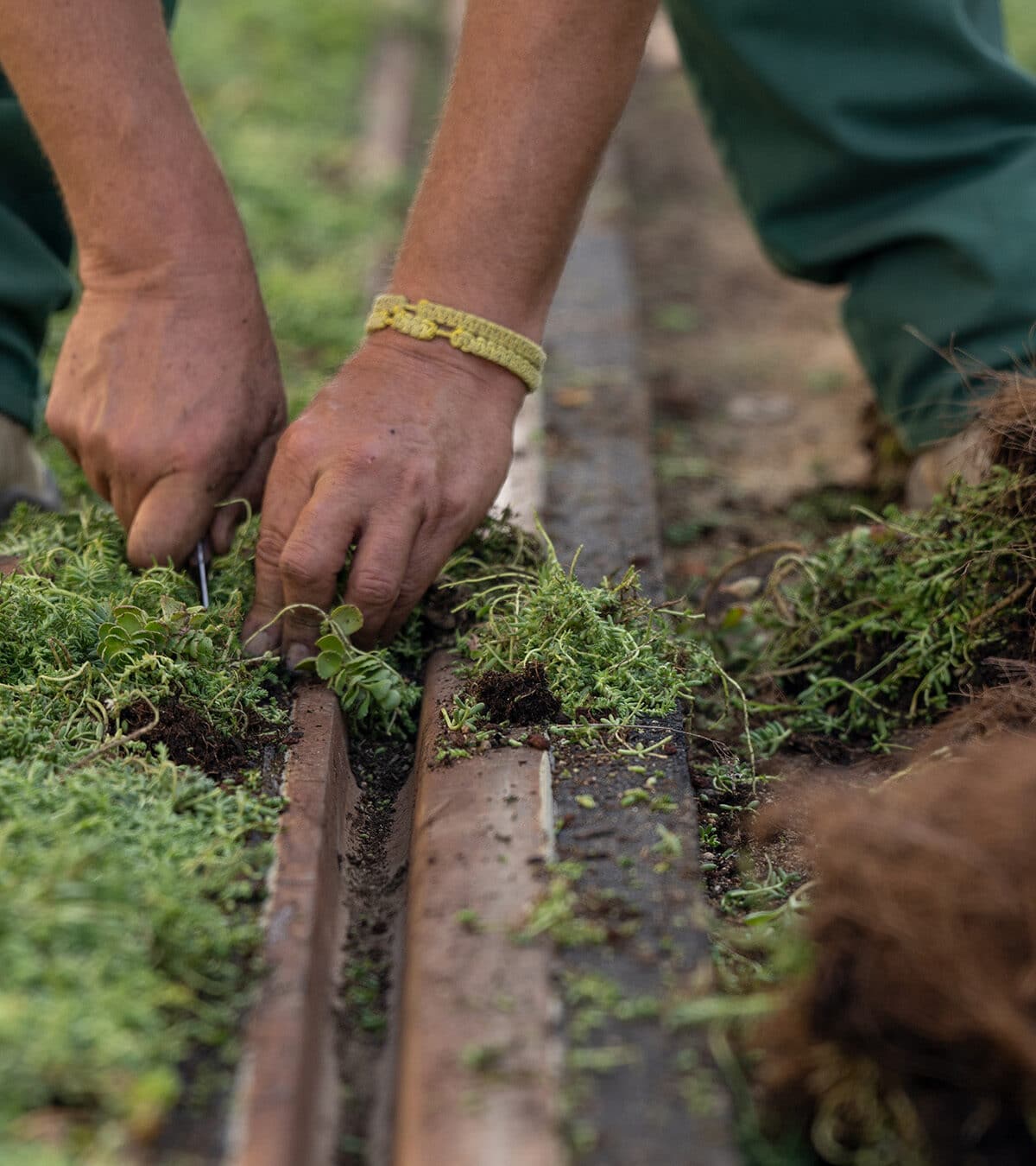 Las mantas de mezcla de Sedum precultivadas llegan con una cobertura del 95%, creando un efecto verde instantáneo y minimizando las malas hierbas.
