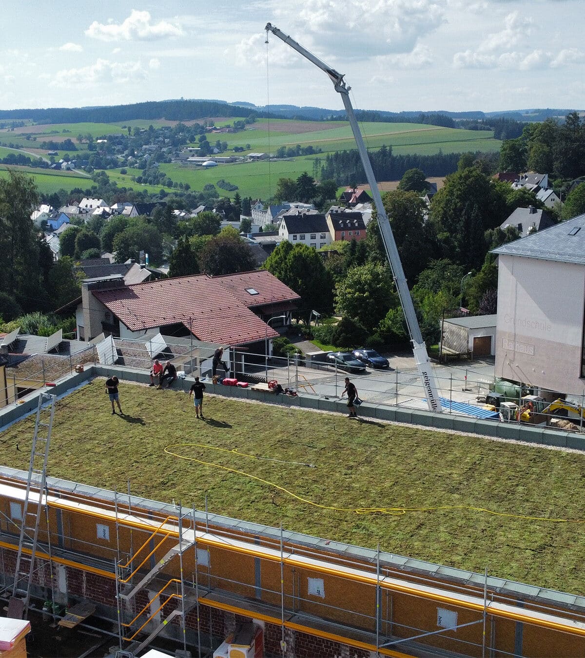 Sempergreen y Browatech instalaron la primera cubierta de retención de Alemania en la escuela primaria de Schauenstein, en Baviera. Como parte de la iniciativa Sponge City, este innovador sistema de cubierta verde almacena y libera gradualmente el agua de lluvia, reduciendo el riesgo de inundaciones y mejorando la gestión sostenible del agua urbana.
