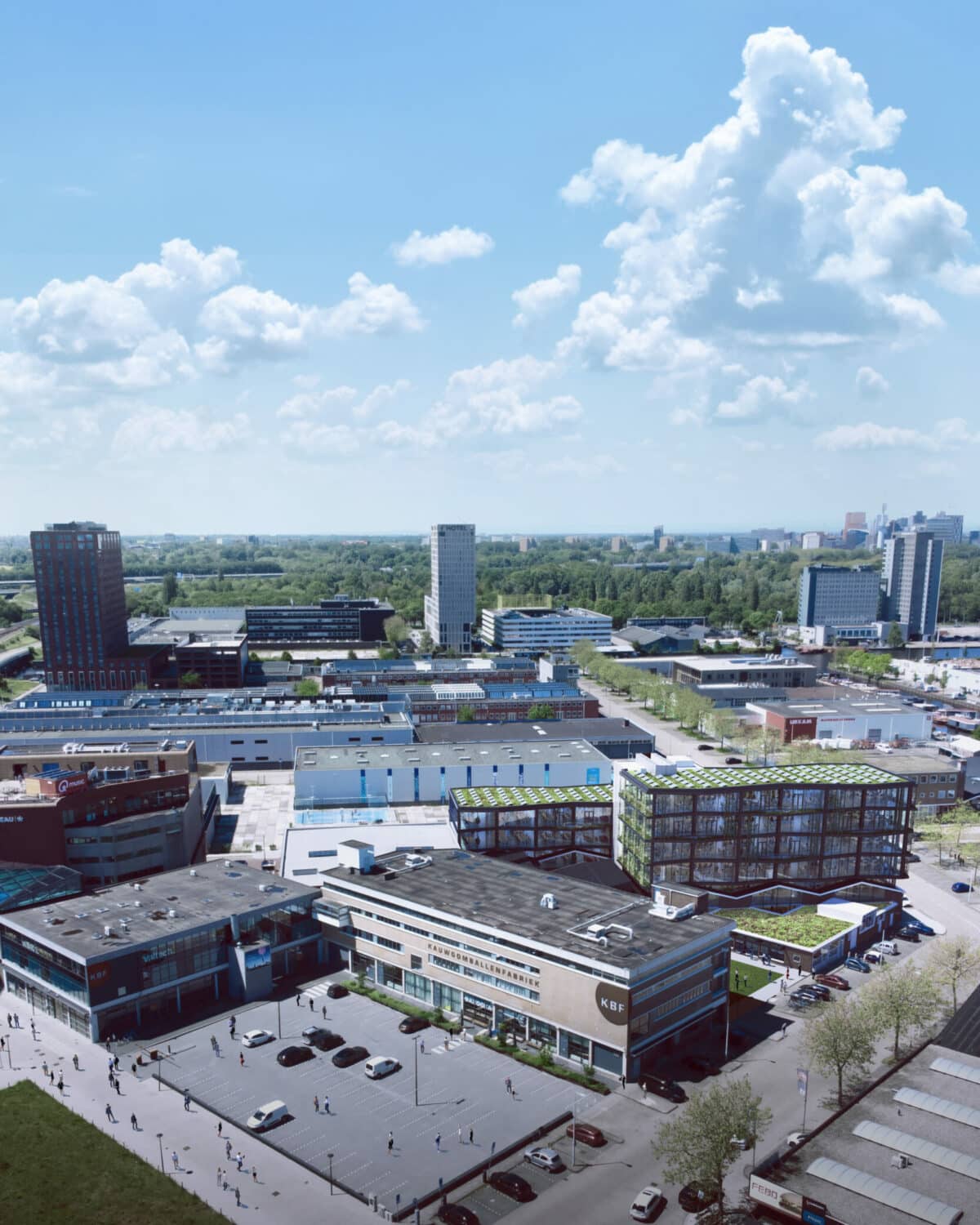 La antigua nave industrial situada en el emblemático barrio Kauwgomballen de Ámsterdam ha experimentado una espectacular transformación y ahora reabre sus puertas como KBF Warehouse: un dinámico lugar de trabajo y encuentro para emprendedores creativos. Bajo el liderazgo visionario de NEXT Architects, el edificio se ha transformado en un modelo de innovación sostenible y reurbanización. El corazón de esta renovación es la cubierta multifuncional de 620 m², que combina sostenibilidad y funcionalidad. Esta cubierta, denominada «Retention Roof», integra el verde (vegetación), el azul (agua) y el amarillo (energía) y es una solución potente y eficaz para condiciones climáticas extremas.